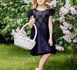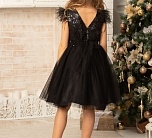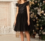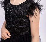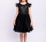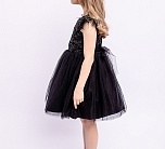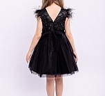 Нарядное черное платье с пышной юбкой из фатина. Гипюр на лифе, рукава из перьев. На спинке имеется поясок, чтобы дополнительно утянуть талию. Подкладка 100% хлопок. Праздничное платье для ребенка от batik на праздник будет превосходно смотреться.