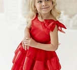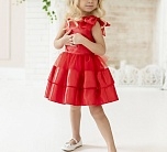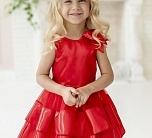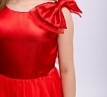 Нарядное платье красное с пышной юбкой, декоративным бантом на плече. Яркое атласное платье с коротким рукавом и пышным подъюбником. Подклад хлопок 100%.