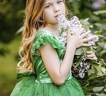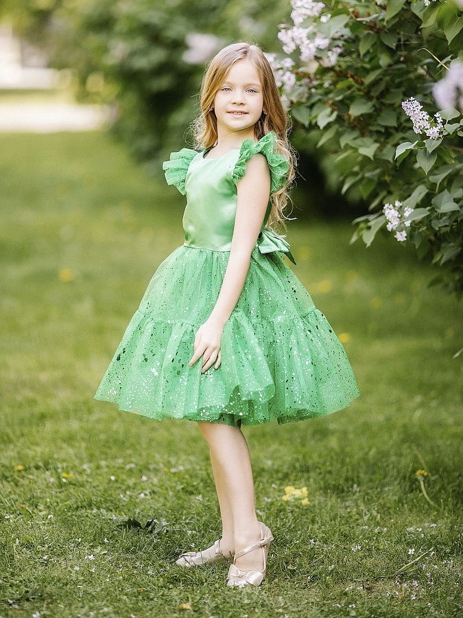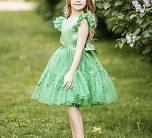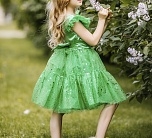 Нарядное платье с пышной юбкой, декоративным бантом на поясе. С Декоративной тесьмой по талии.На спинке имеется поясок чтобы дополнительно утянуть талию.