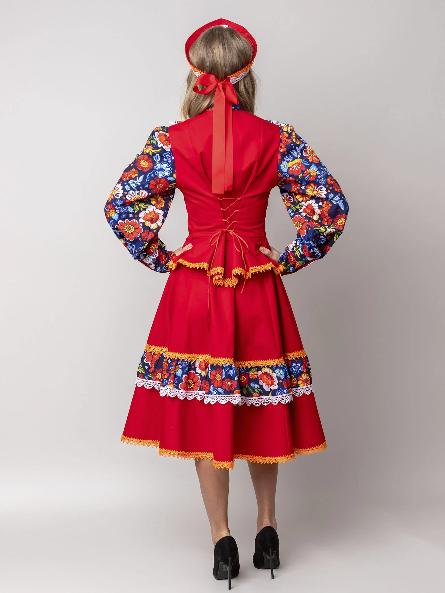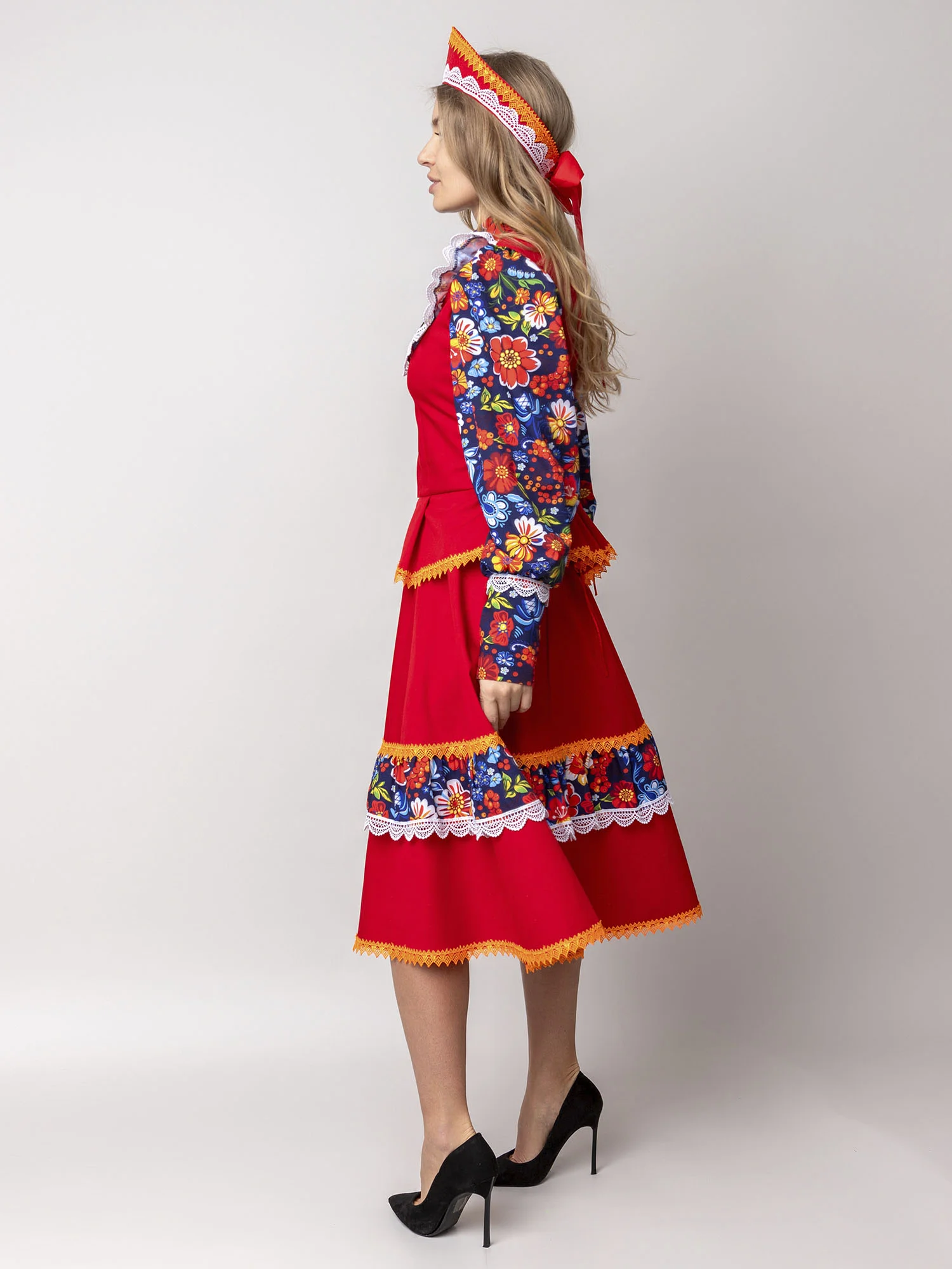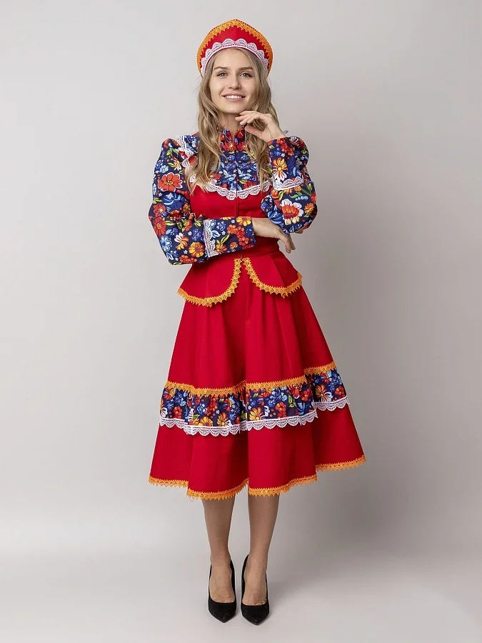 Казачий карнавальный костюм «Елена» — выразительный образ в традиционном стиле с характерной отделкой и аккуратными деталями. Наряд создаёт яркий сценический эффект и отлично подойдёт для выступлений, праздников и тематических мероприятий.