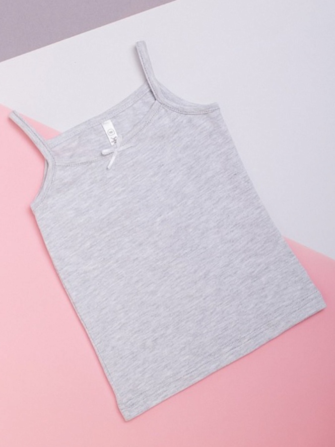Майка для девочки трикотажная в расцветке серый меланж. Майка из экологичного хлопка для девочек. Натуральный, гипоаллергенный, воздухопроницаемый материал, который отлично сохраняет свою форму при носке.