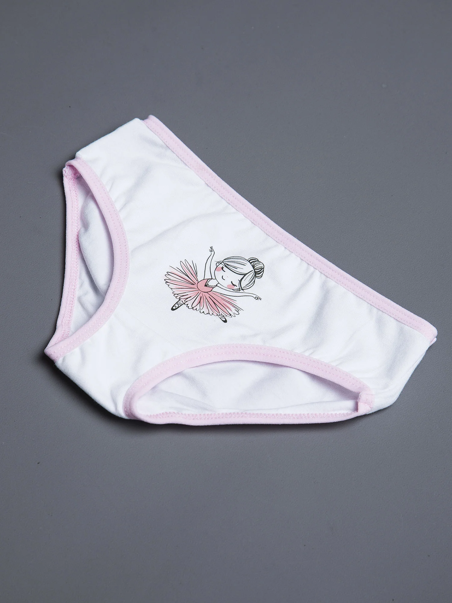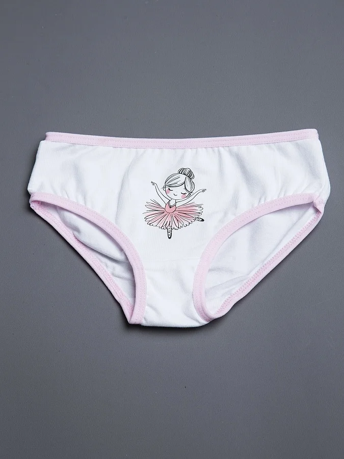 Детские трусы-слипы для девочки бело-розового цвета. Мягкие и комфортные трусики из нежного супрема пенье, которые обеспечивают идеальную посадку и не раздражают кожу. Эластичная ткань с добавлением лайкры мягко облегает, не сдавливая, а натуральный хлопок позволяет коже дышать. Приятный цвет и милый рисунок спереди в виде балерины. Удобная резинка не перетягивает и не оставляет следов на теле.