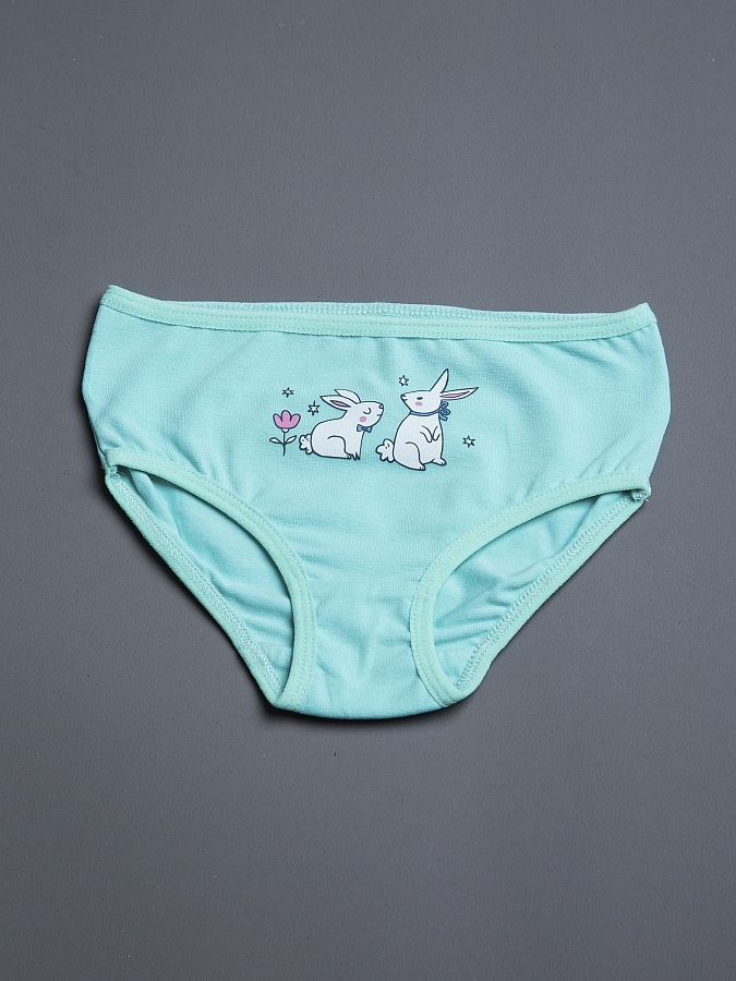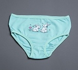 Трусы-слипы для девочки в мятном цвете с рисунком из мягкого супрема пенье. Мягкая эластичная ткань обеспечивает полную свободу движений. Натуральный хлопок позволяет коже дышать даже в жаркие дни. Удобная резинка с плоской строчкой не перетягивает талию.