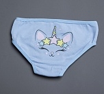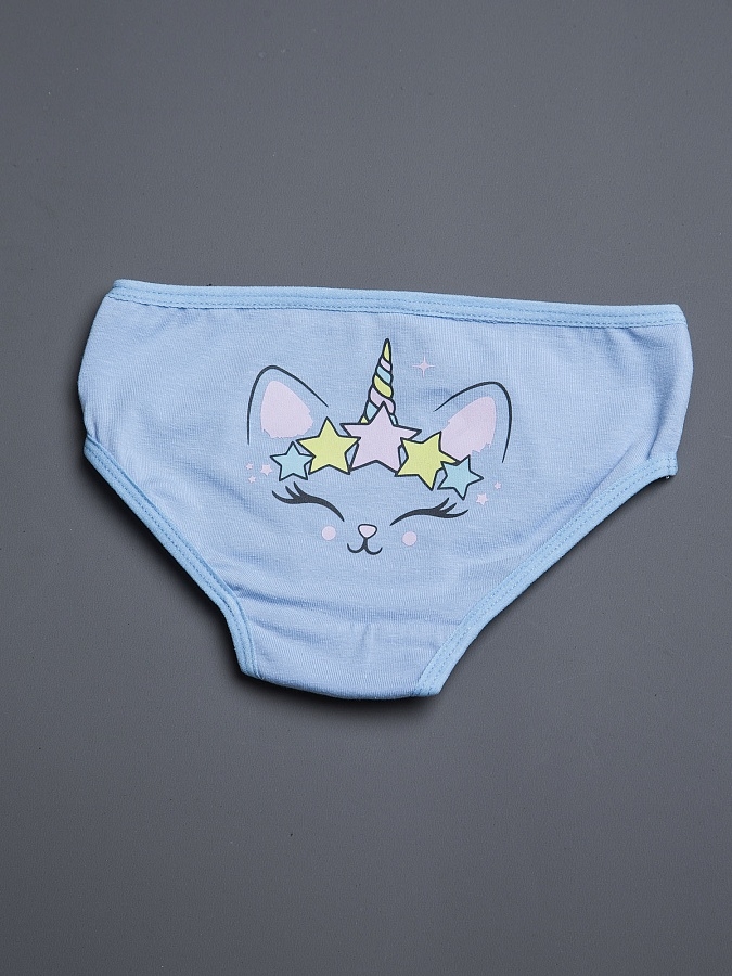 Трусы-слипы для девочки в голубом цвете с рисунком из мягкого супрема пенье. Мягкая эластичная ткань обеспечивает полную свободу движений. Натуральный хлопок позволяет коже дышать даже в жаркие дни. Удобная резинка с плоской строчкой не перетягивает талию.