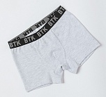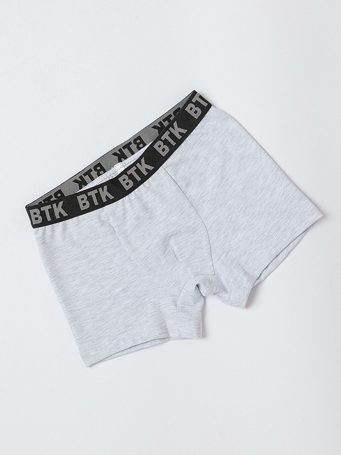 Боксеры (трусы) для мальчика в расцветке серый меланж с черной резинкой из супрема пенье. Выполнены мягкого трикотажного полотна с высоким содержанием хлопка и добавлением эластана. Внешняя эластичная резинка. Без боковых швов.