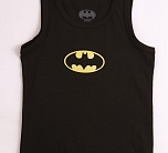 Майка для мальчика в черной расцветке из супрема. Майка на лямках из натурального хлопка, принт Бэтмен на груди. Для мальчиков от 3 до 11 лет.