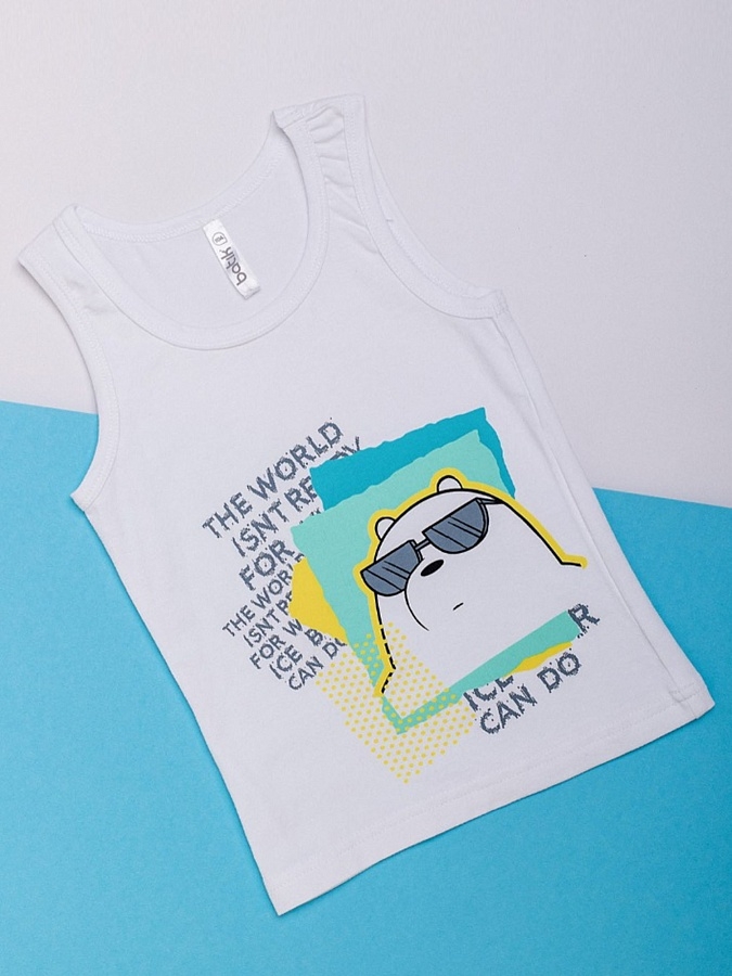 Майка для мальчика белая с рисунком и надписями. Детские майки для мальчиков — торговая марка batik — это качественное нижнее, детское белье, изготовленное на современном предприятии, что является гарантией качества и самой низкой цены.