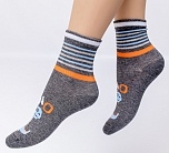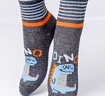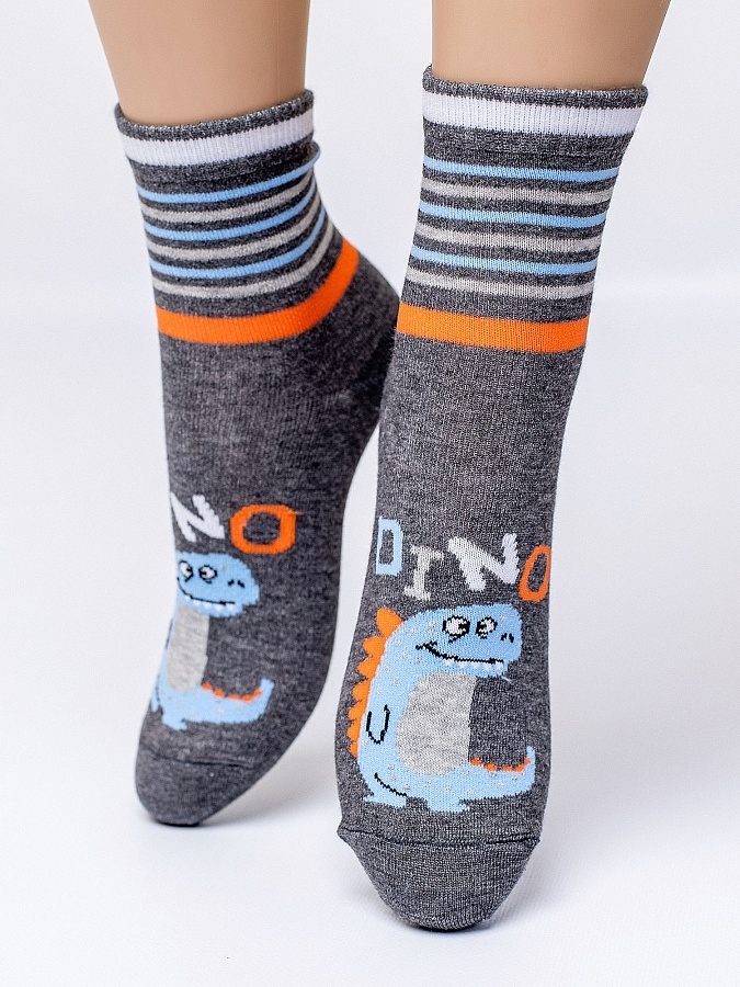Носки для детей batik темно-серые в полоску с рисунком в виде динозавра. Хлопковые тонкие носки понравятся ребенку и родителям. Нарядные облегченные носочки сочетаются с любой одеждой для детей.