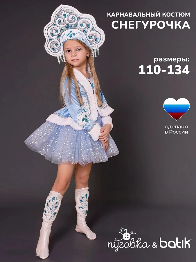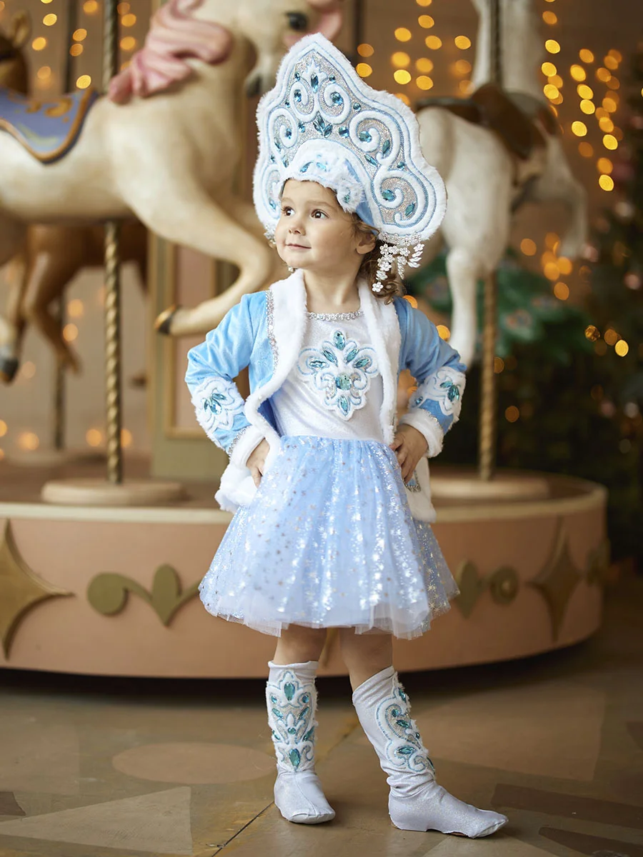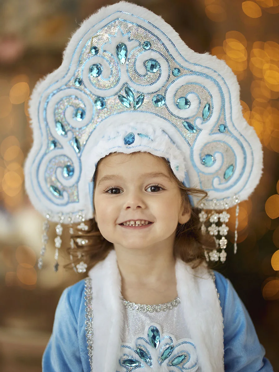Костюм Снегурочки Полины детский новогодний - яркий и самобытный образ для запоминающихся праздников. В комплект входит платье, шуба, кокошник, сапожки.