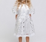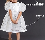 Карнавальный костюм Снежинка Кимми для девочек: платье и ободок. Новогодний костюм Снежинка от бренда Пуговка - отличное решение для праздничного утренника или домашнего праздника, а также фотосессии. Платье пышное с объемными короткими рукавами и серебристыми кружочками.