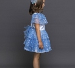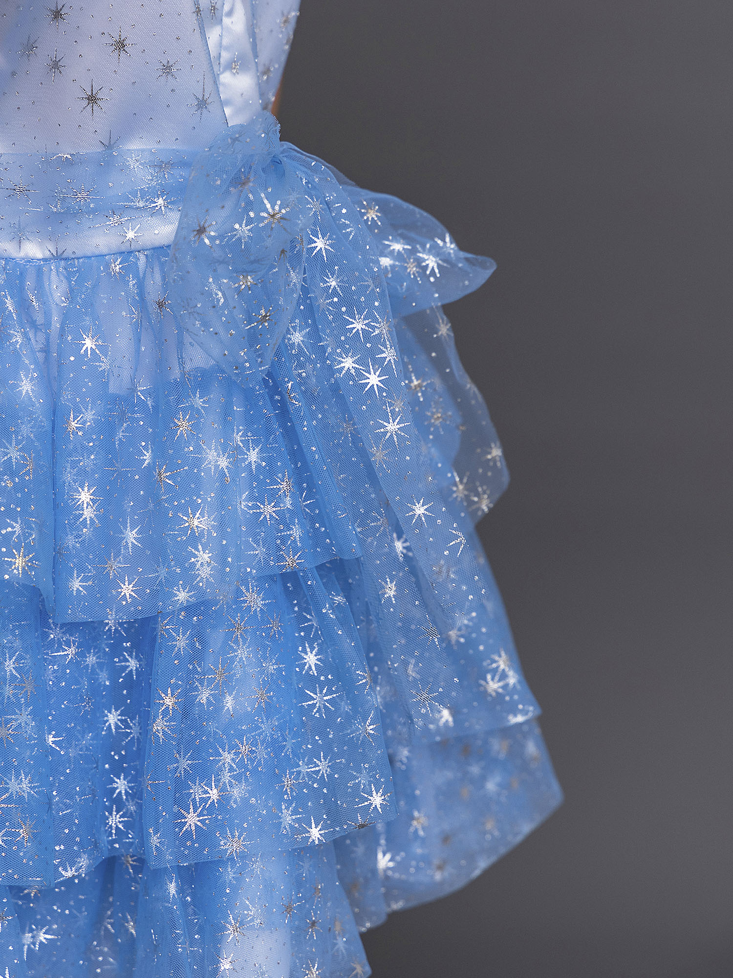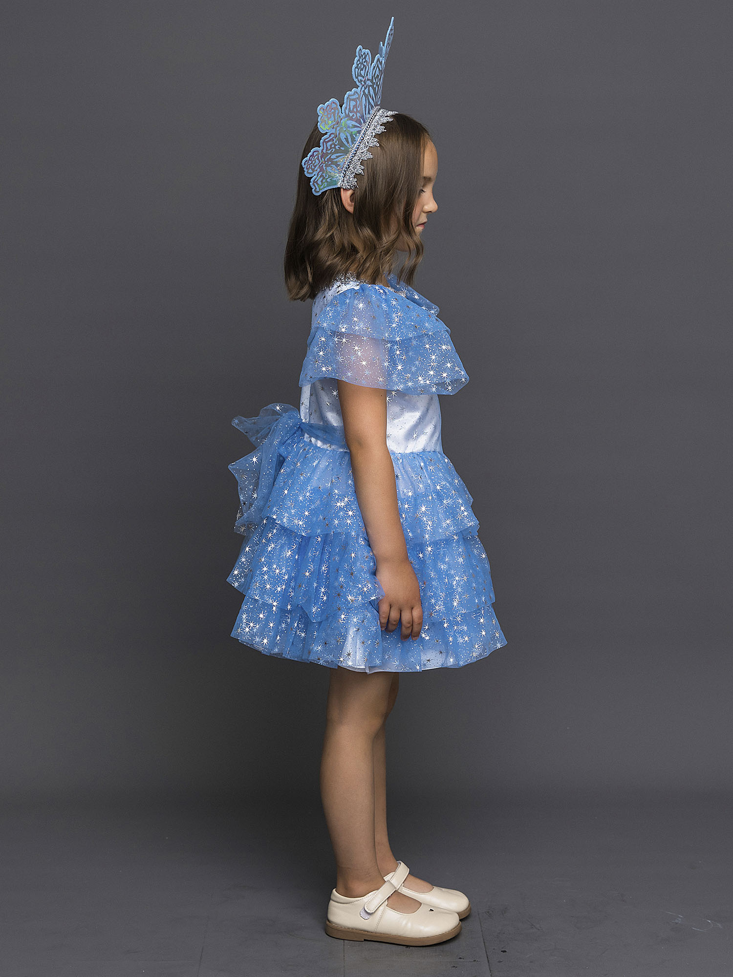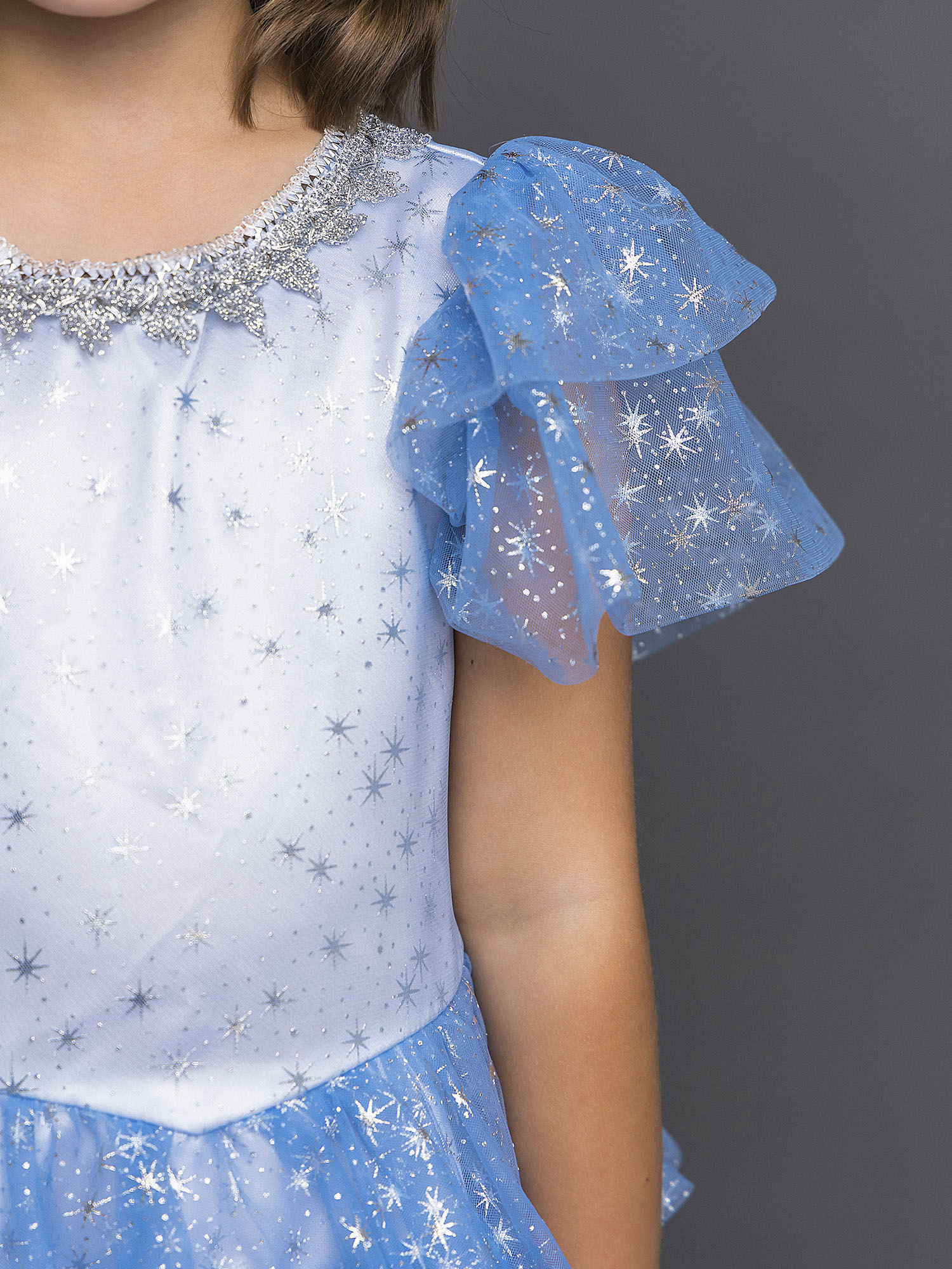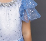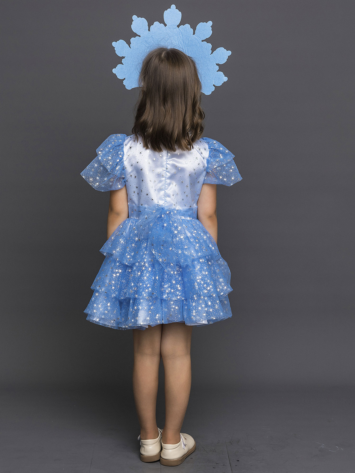 Костюм Снежинка Эмма представляет собой изысканное пышное платье, выполненное с тремя ярусами сборки сетки на юбке, что придает ему волшебный и воздушный вид. Спинка платья оснащена утяжкой, что обеспечивает идеальную посадку и комфорт при носке. Кокошник, который идет в комплекте, надежно фиксируется на голове благодаря резинке, дополняя образ сказочной снежинки. Этот костюм идеально подходит для карнавальных мероприятий, утренников и праздничных выступлений.