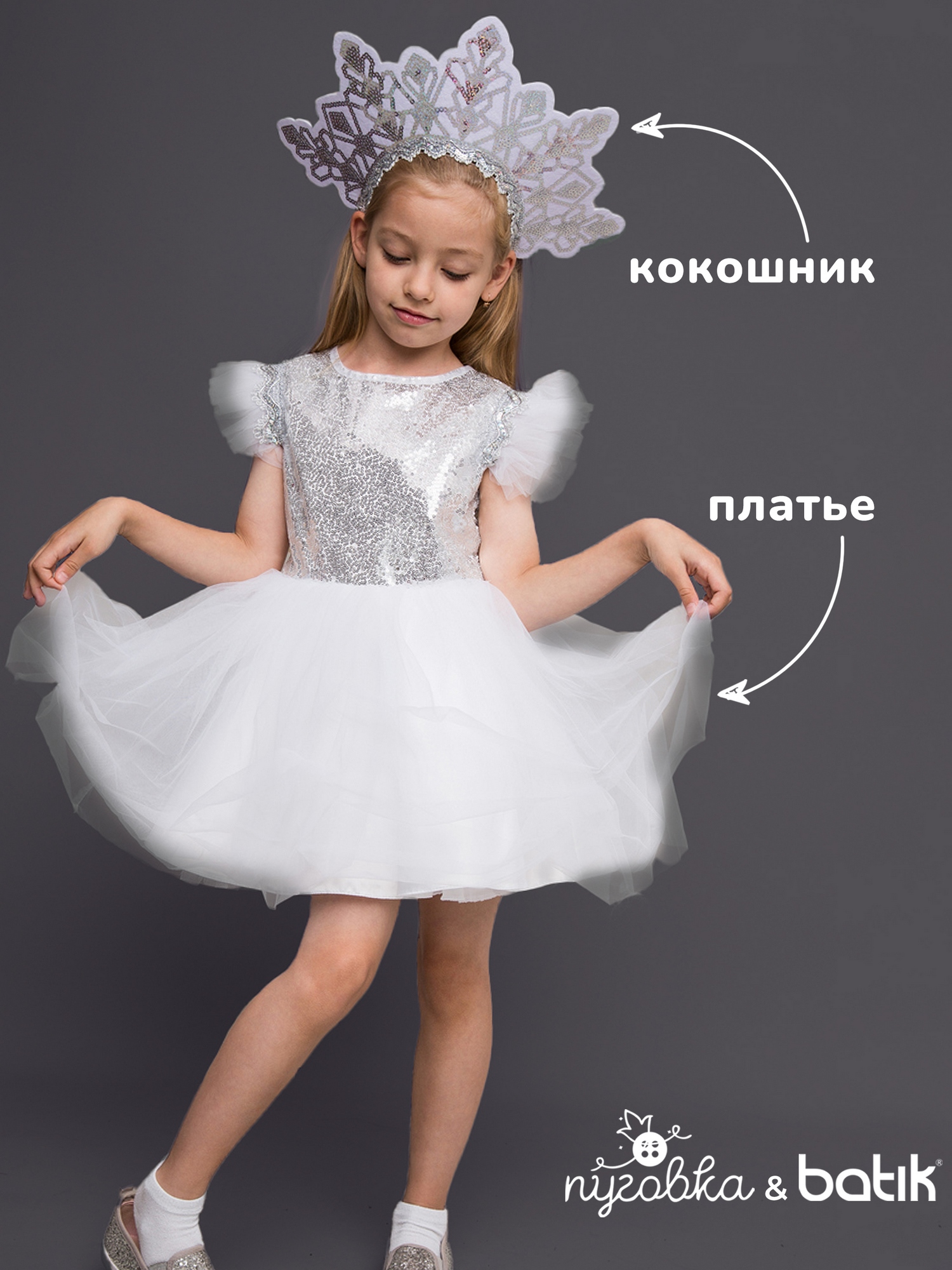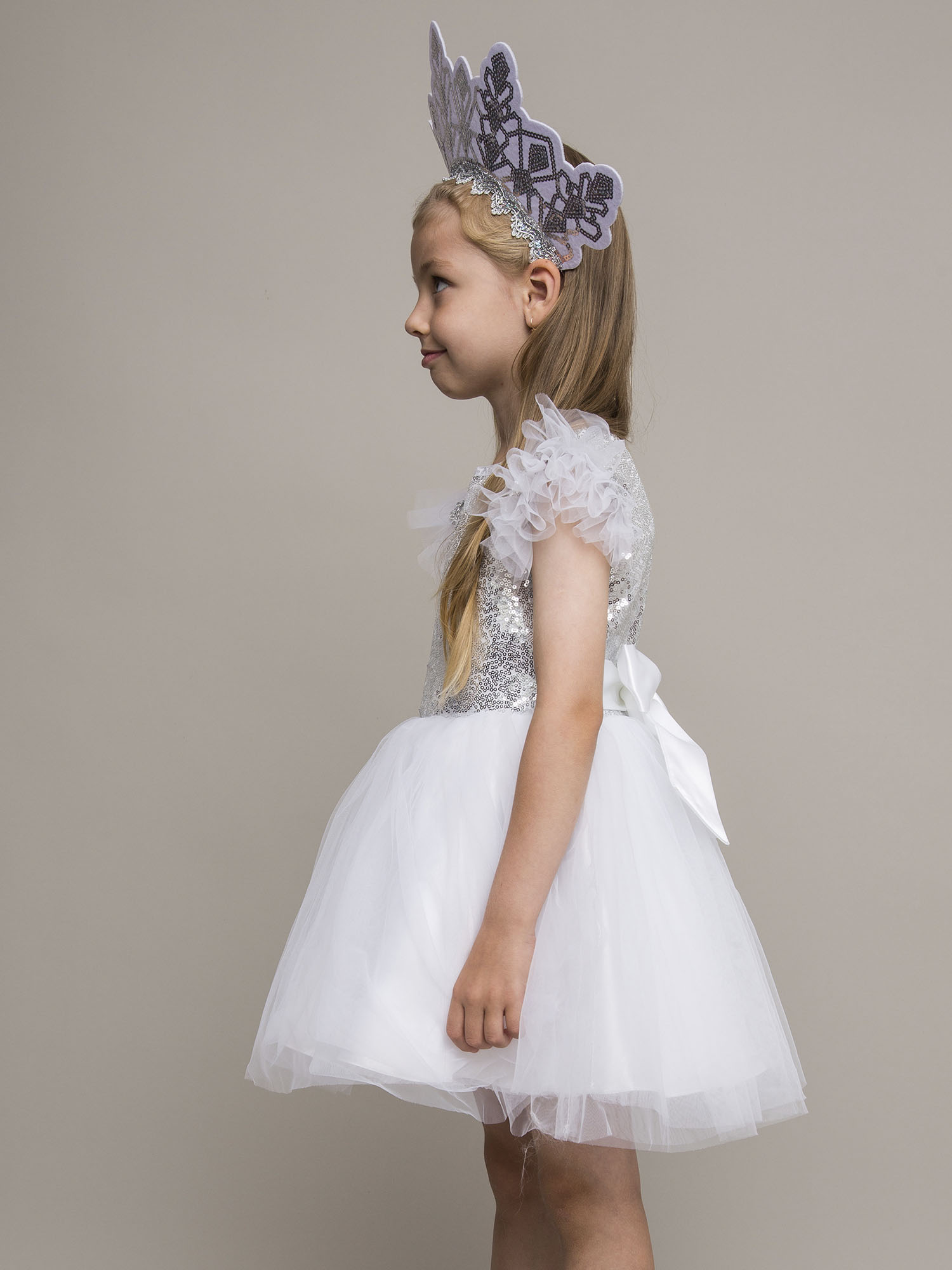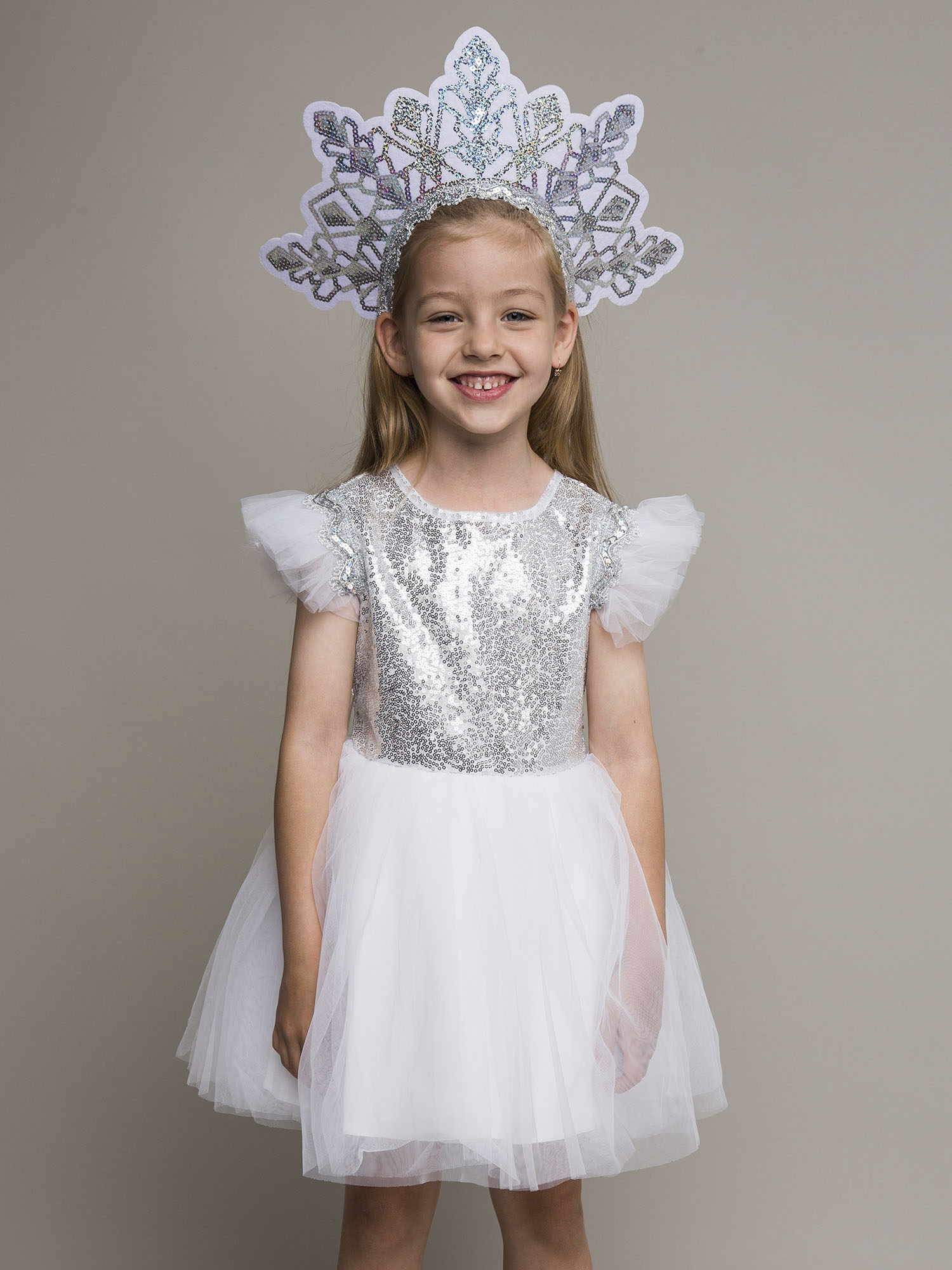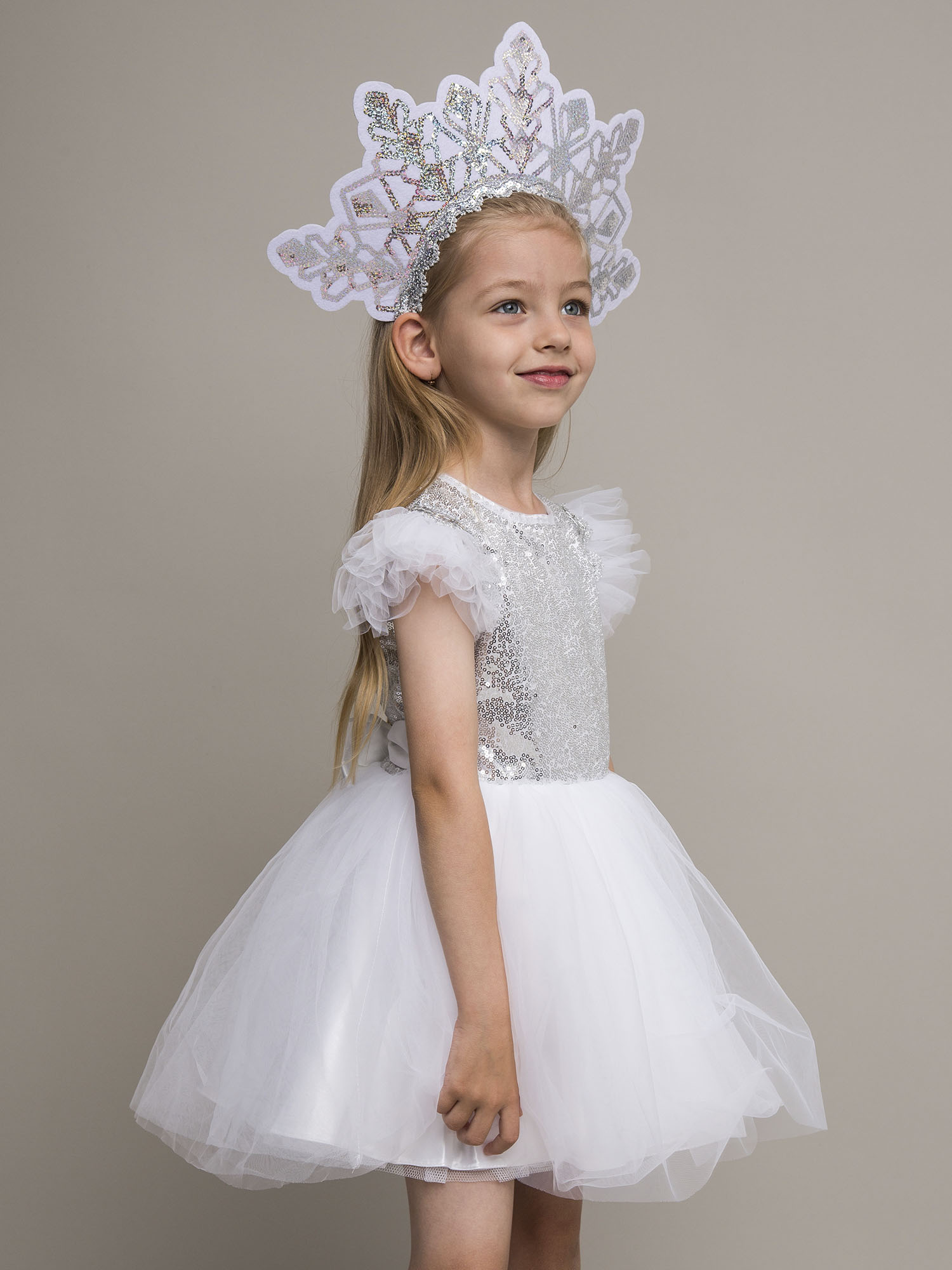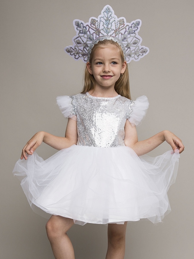 Карнавальный костюм «Снежинка Элис» — нежный и нарядный образ для утренников, новогодних праздников и театральных постановок. Лёгкое пышное платье с блестящим декором и воздушными деталями создаёт волшебный образ снежинки, а удобный крой обеспечивает комфорт во время праздника. Отличный выбор для маленькой принцессы!