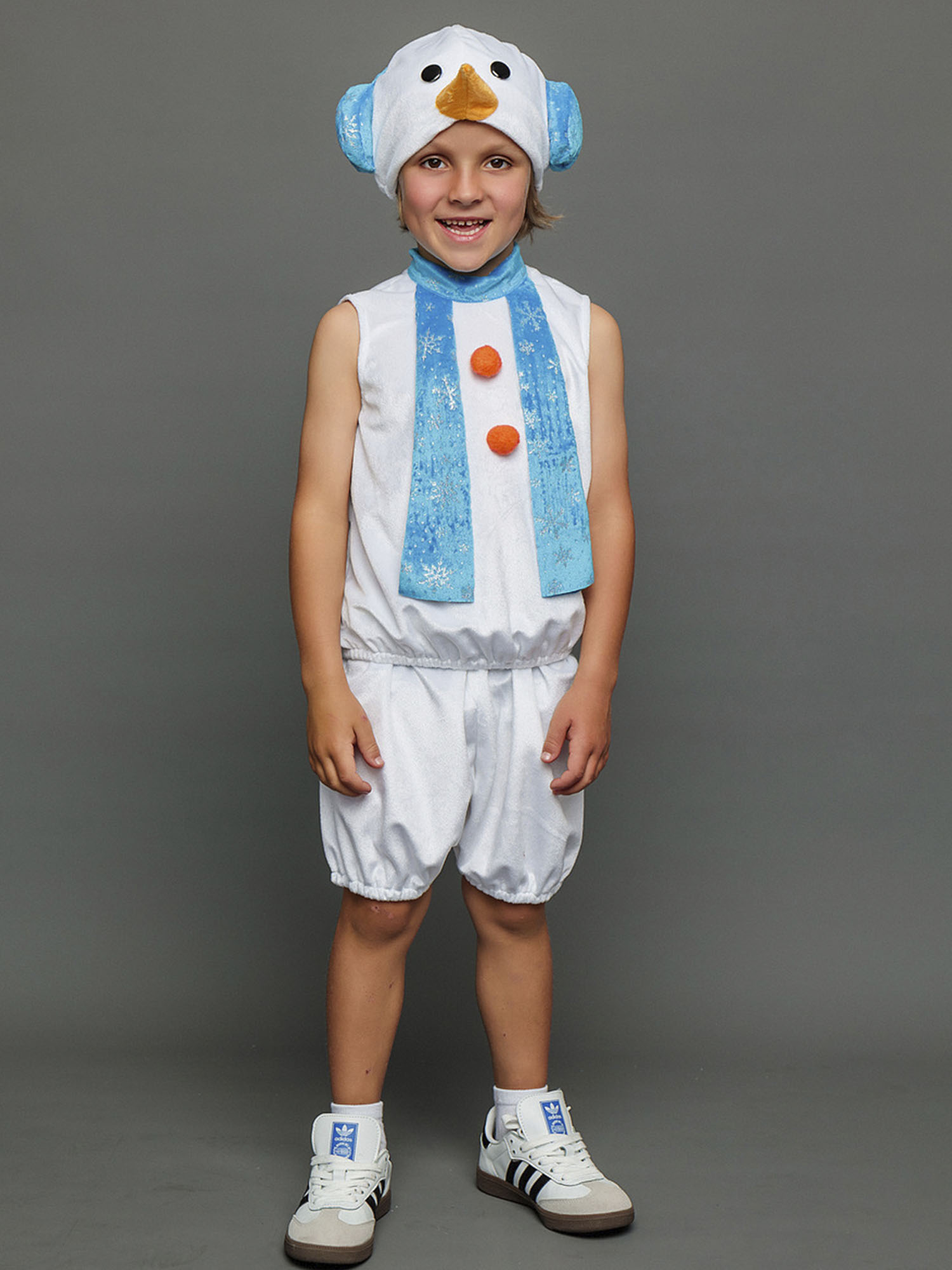 Оригинальный и современный образ Снеговик Крош выделит ребенка среди множества Снежинок, Кроликов и Дедов Морозов. Мягкий плюшевый наряд подарит малышу комфорт даже во время затянувшегося торжества. Костюм Снеговик Крош является универсальной моделью, подходит как для мальчиков, так и для девочек. Комплектация образа: жилет, шорты и шапка.
