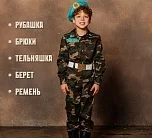 Детский костюм Десантник – точная копия формы воздушно-десантных войск. В таком костюме мальчик сможет оригинально поздравить папу или дедушку на день ВДВ или 23 февраля, а еще поучаствовать в костюмированном праздничном выступлении. Костюм включает в себя рубашку и брюки с камуфляжной расцветкой, майка в полоску, берет и ремень.
