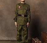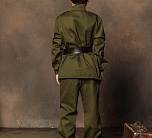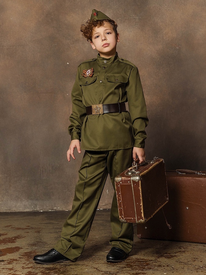 Этот образ является точной копией формы солдата Красной Армии. Широкий диапазон размеров делает костюм подходящим для мальчика практически любого возраста. Такой костюм прекрасно подойдет не только для празднования Дня Победы, но и на Новый год, и на 23 февраля. Также может использоваться в качестве костюма для спектаклей и номеров.