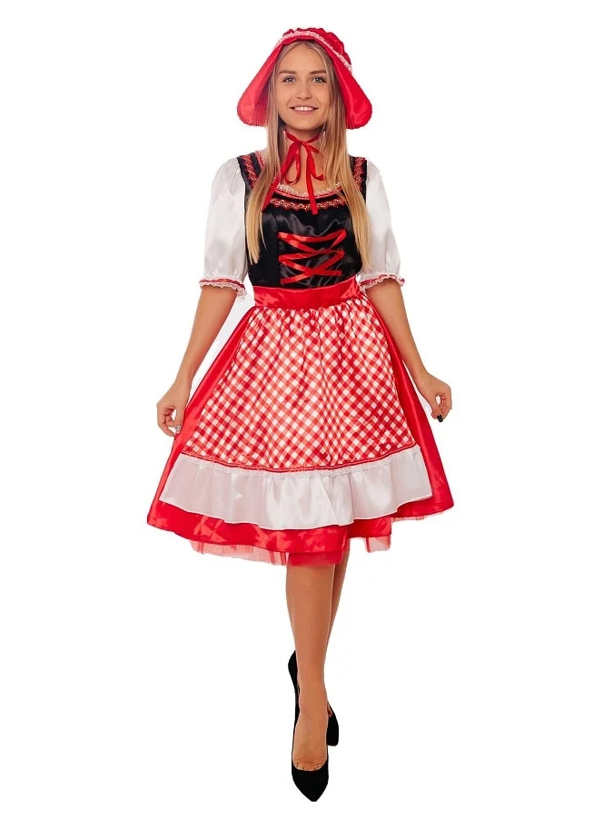 Карнавальный костюм Красная Шапочка для взрослых от бренда Пуговка. В таком чудесном наряде можно отправиться на тематическую вечеринку, детский праздник или фотосессию. Комплект костюма включает платье и шапку.