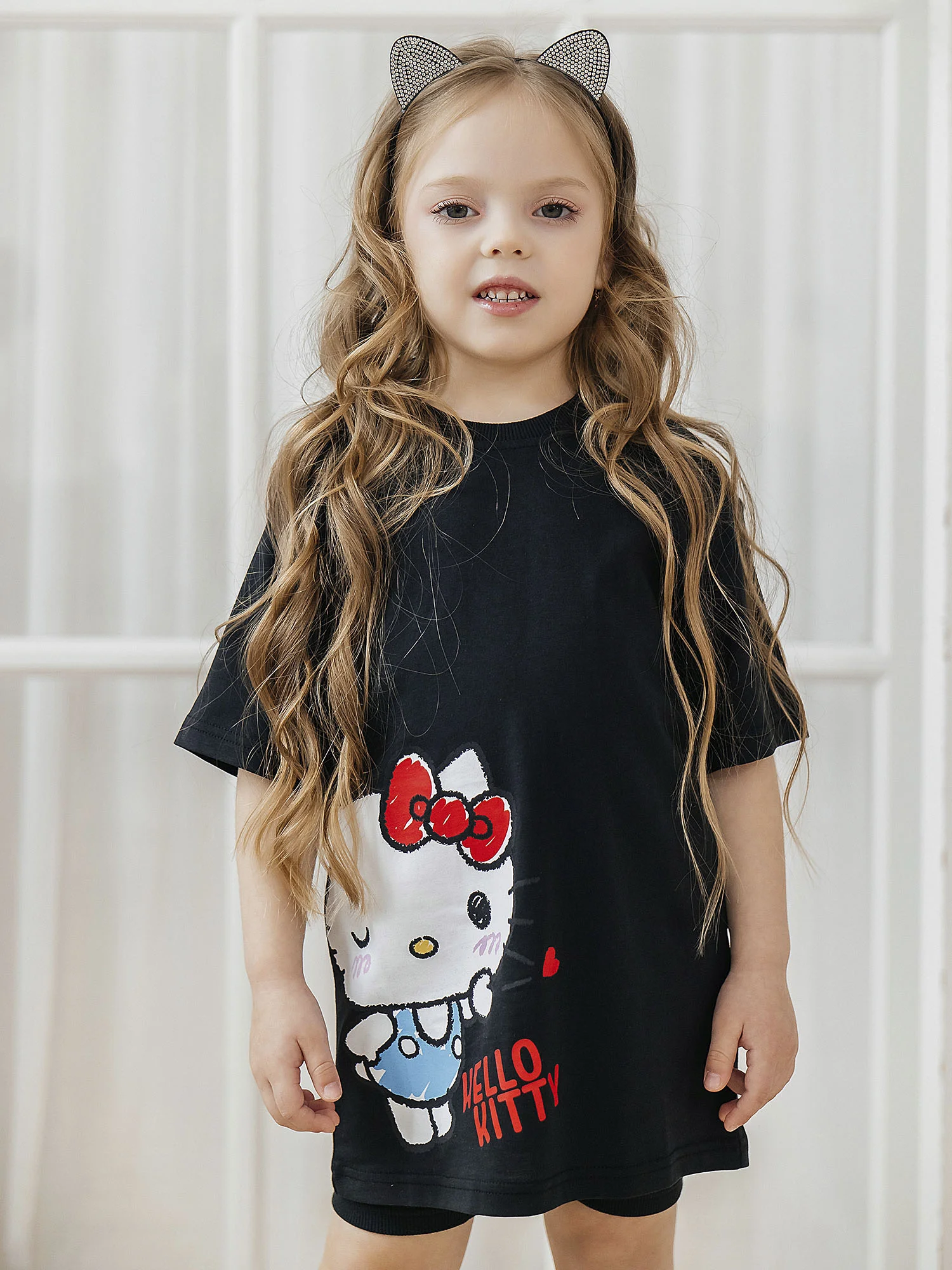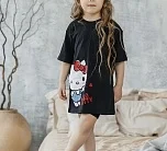 Комплект (футболка кор.рукав и велосипедки) выполнен из 100% хлопка. Мягкий, эластичный и приятный к телу материал обеспечивает комфорт в течение дня. Цвет — черный.