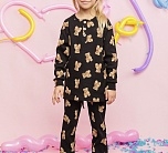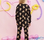 Пижама для девочки черная из ткани кашкорсе: свитшот и брюки. Пижамный универсальный костюм с принтом мишки понравится детям любого возраста. Он отлично подойдет для уютного ночного сна и повседневной носки.