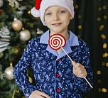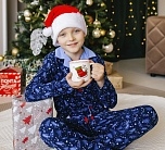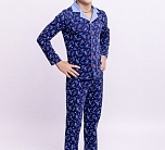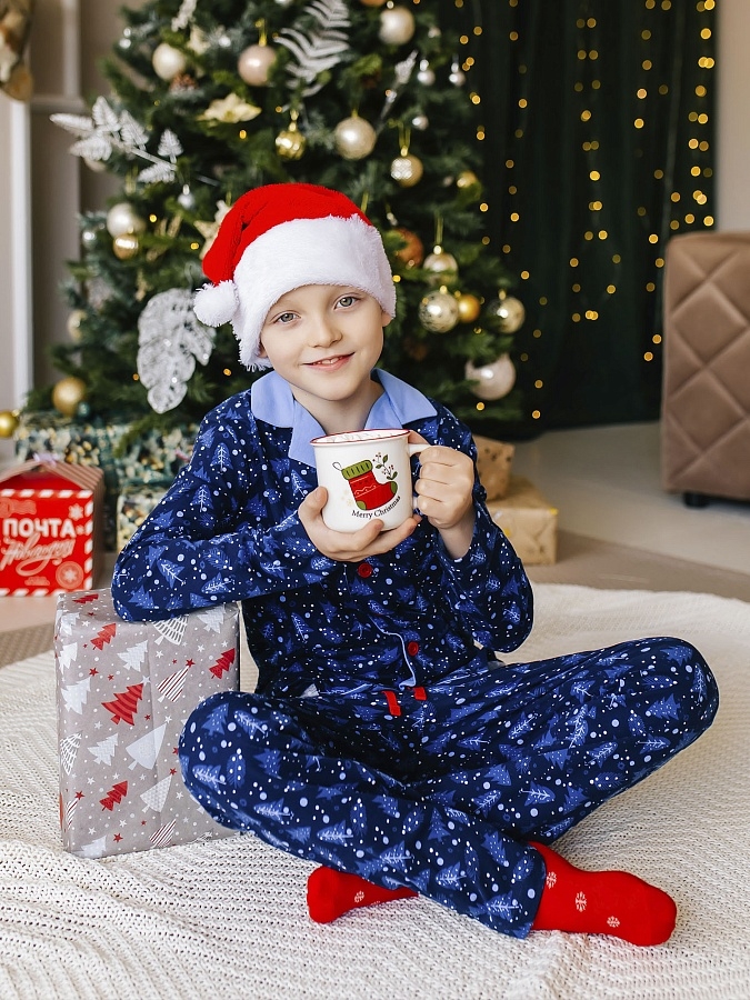 Пижама детская синяя с принтом "елочки". Красивая зимняя пижама из новой новогодней коллекции трикотажа от Батик. В комплект входит футболка и брюки.