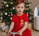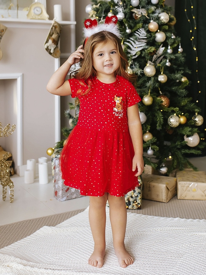 Платье для девочки красное - новогодняя коллекция трикотажа для новорожденных 2021-2022. Принт с тигром - символом 2022 года.