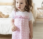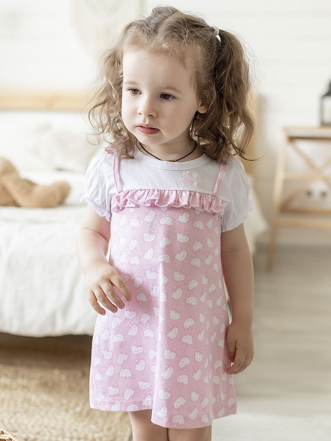 Платье детское бело-розовое с коротким рукавом и принтом Китти.