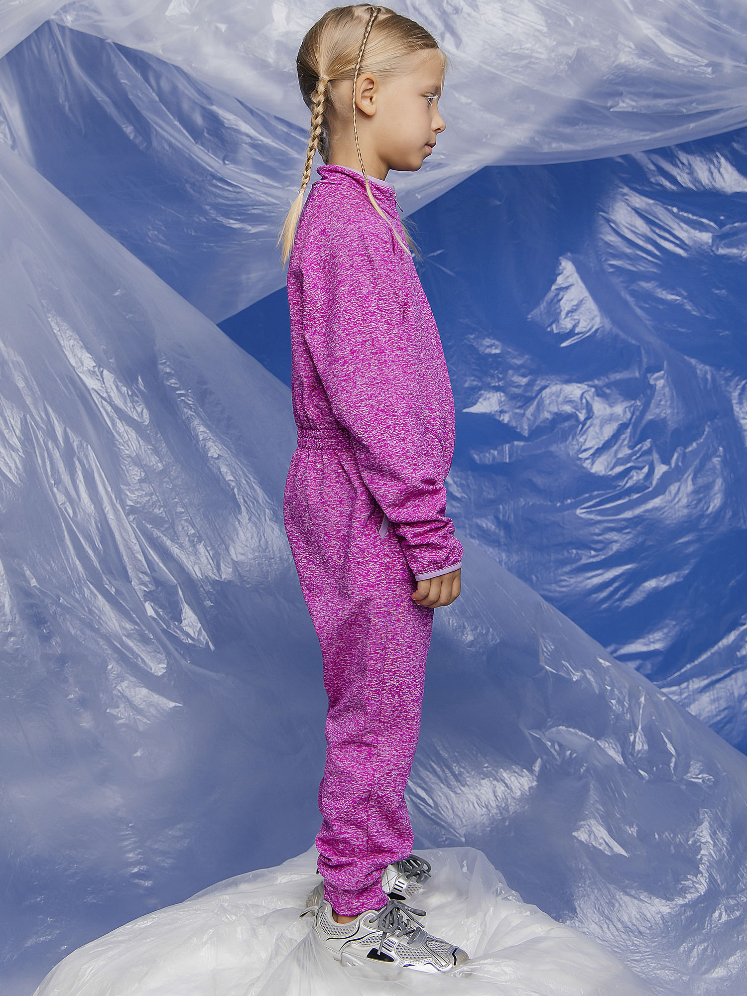 Флисовый комбинезон Макси лиловый из двухслойного трикотажа на молнии. Стильный комбинезон из флиса можно носить в качестве поддевы зимой и в межсезонье. Флис сохраняет тепло и отводит влагу от тела, оставляя кожу ребенка сухой. Застежка на молнию спереди. Воротник-стойка хорошо защищает горло от ветра. Рукава с манжетами, которые надеваются на руку. Полностью гипоаллергенная ткань. Низ на эластичной резинке. Есть карманы по бокам.