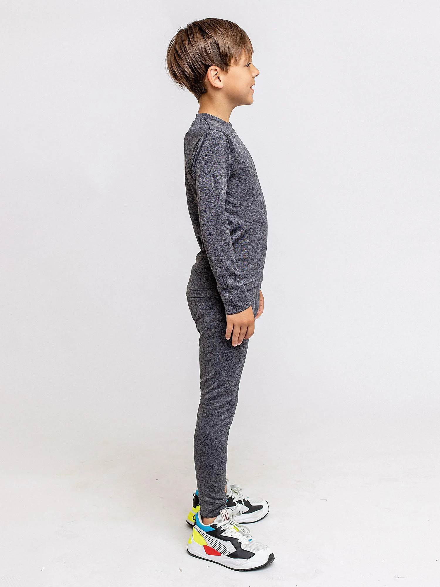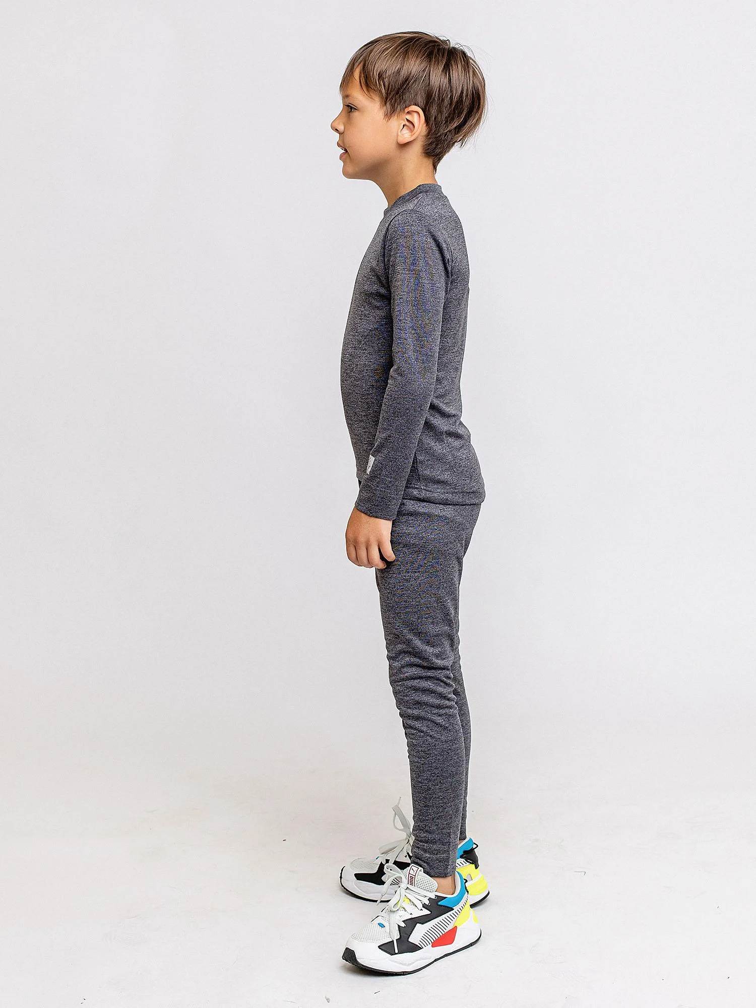 Термобелье двухслойное для детей в расцветке черный меланж. Термобелье от бренда batik создано для того, чтобы ребенку было тепло и комфортно во время игр, прогулок или отдыха дома. Комплект состоит из леггинсов и лонгслива с длинными рукавами.