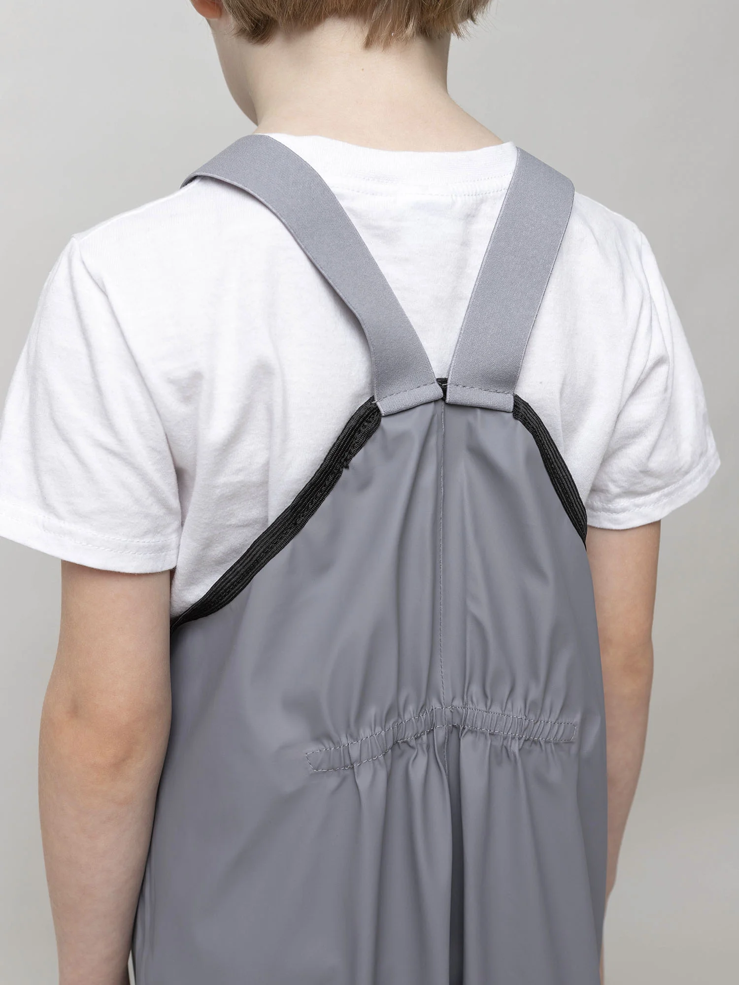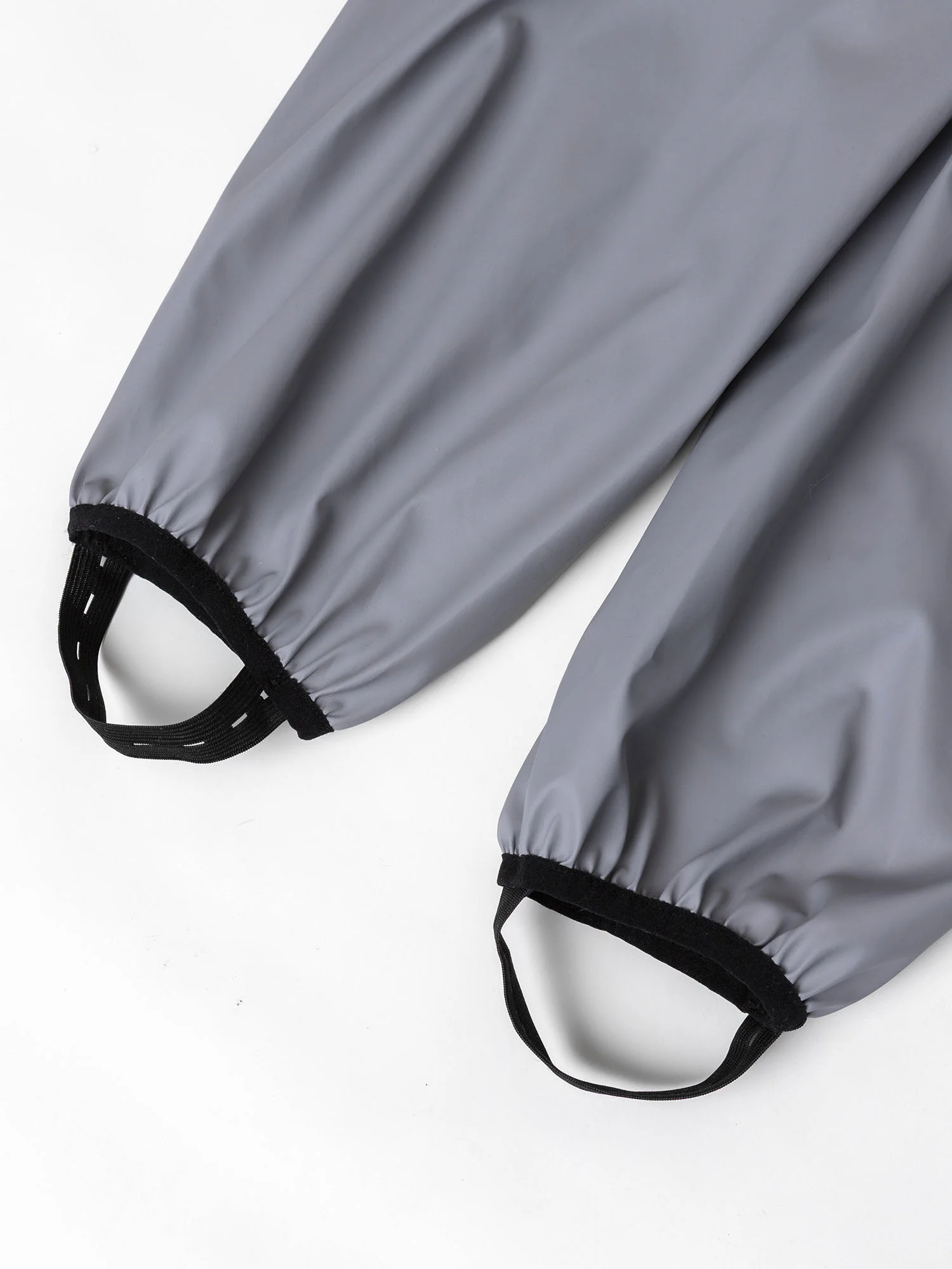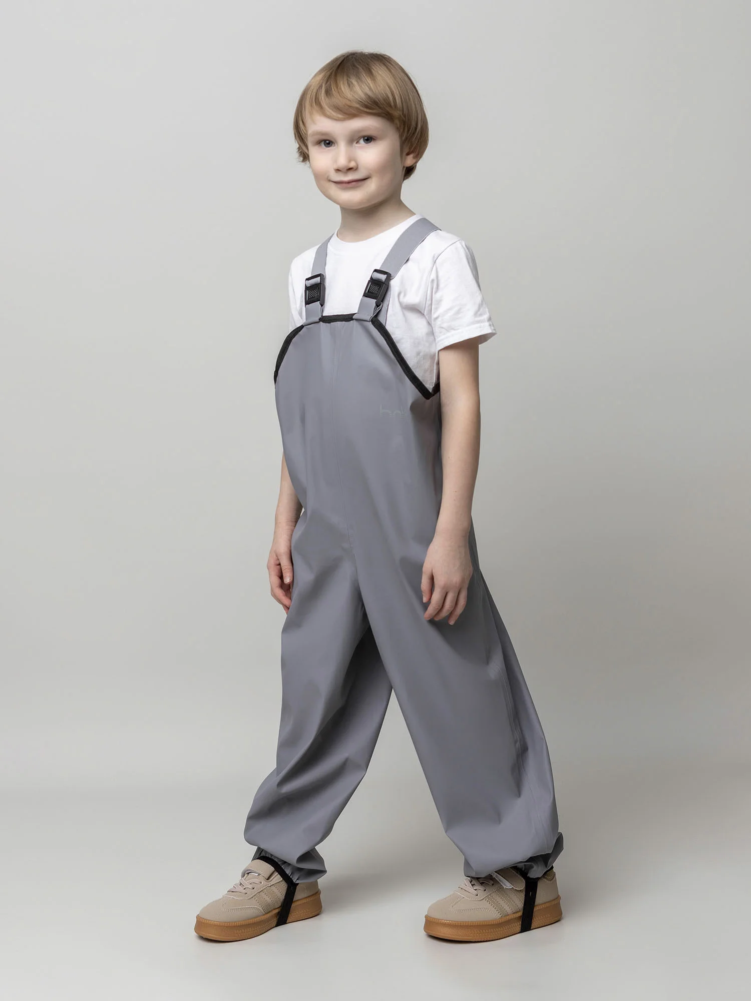Непромокаемые брюки «Тоно» серого цвета. Выполнены из прорезиненной ткани на основе 100% полиэстера, которая надежно защищает от влаги и ветра. Практичная и удобная модель для прогулок и активного отдыха в дождливую погоду.