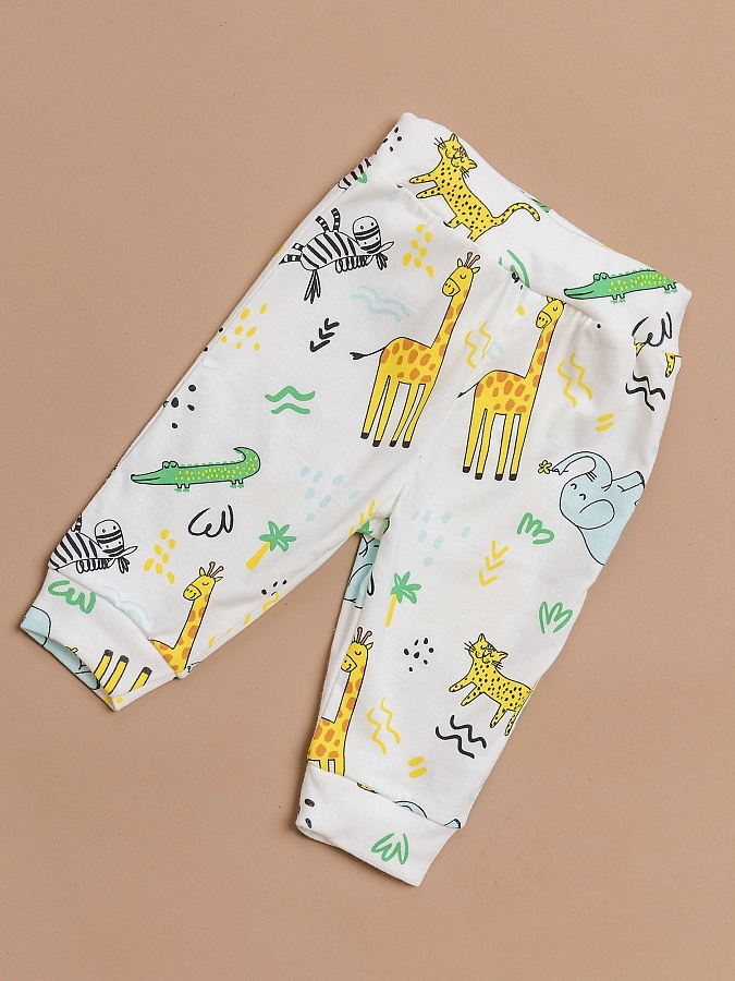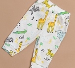 Штанишки детские для мальчиков — это неотъемлемая часть гардероба новорожденного. Они изготовлены из 100% хлопка. В них удобно передвигаться, они подойдут для ношения во время активных игр, прогулок и даже сна. Красочный принт со зверятами, мягкая эластичная резинка в поясе.