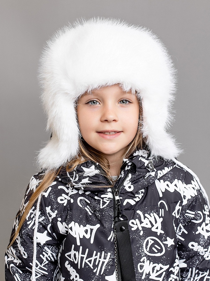Шапка меховая для девочки белая на завязках зимняя от бренда batik. Стильная шапка-ушанка детская с искусственным мехом и подкладом. Меховая шапка теплая, мягкая, не колется, подходит для холодной зимы. Шапочка хорошо сидит и держит форму.