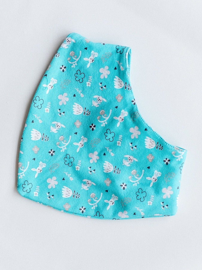 Слюнявчик бандана для новорожденных трикотажный. Слюнявчик необходим малышам, которые учатся кушать самостоятельно. Выполнен в голубой расцветке с принтом.