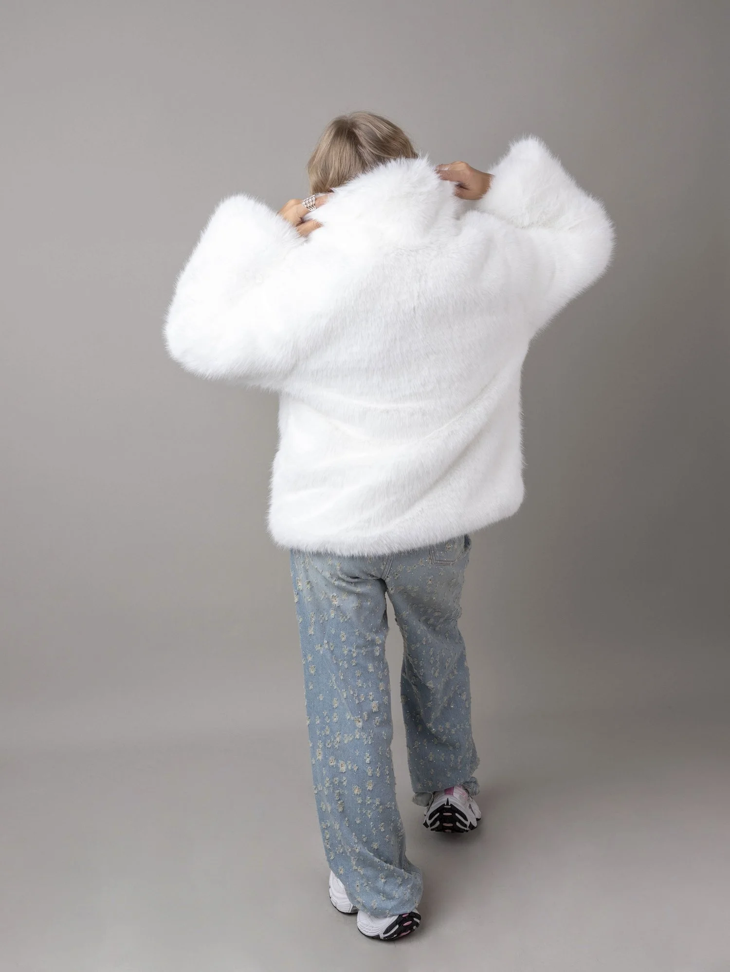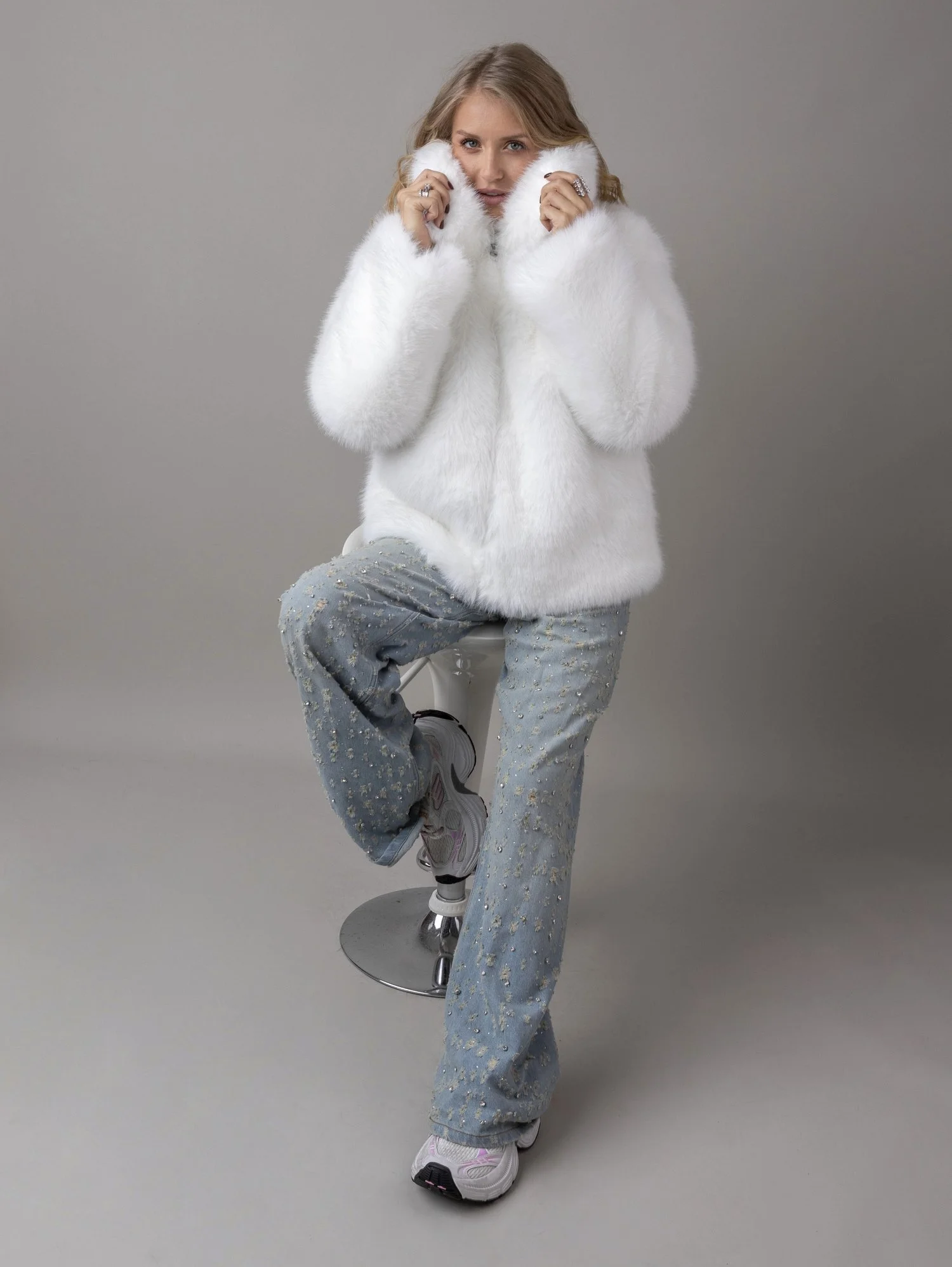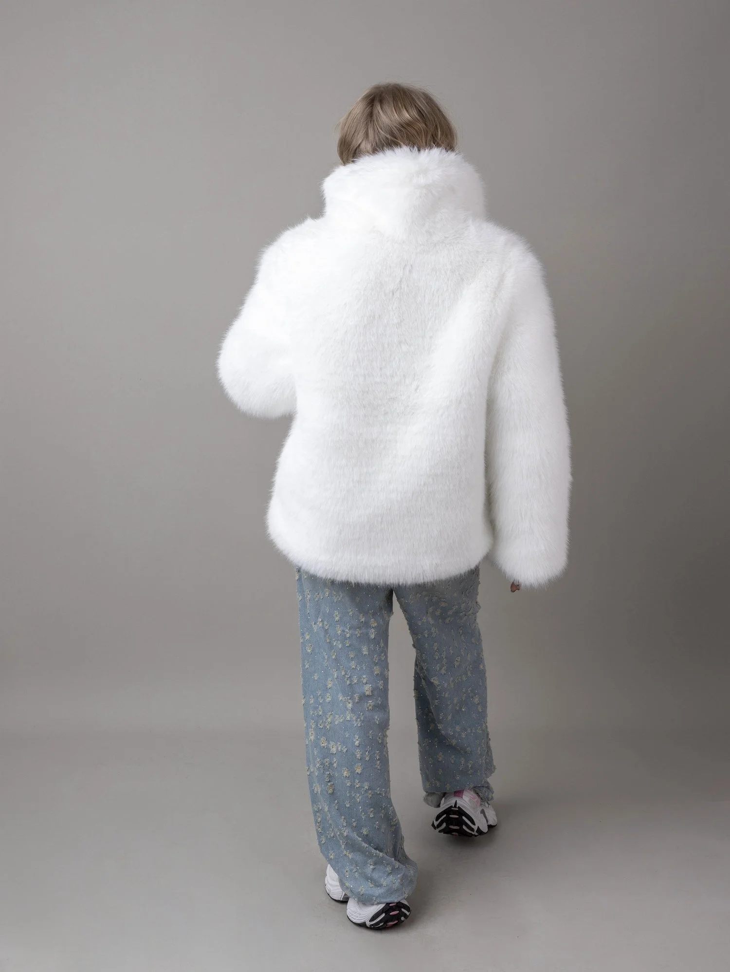 Шуба белая до бедер сочетает в себе утонченный дизайн и продуманную функциональность. Центральная застежка-молния обеспечивает удобство использования, а воротник стояче-отложного типа предлагает вариативность в создании образа: его можно носить как классической стойкой, так и мягко отложить. Дополнительная застежка на пуговицу у горловины надежно защищает от ветра и холода. Практичность модели подчеркивают удобные прорезные боковые карманы с теплой подкладкой, где руки будут надежно защищены от мороза. Элегантный силуэт, качественные материалы и внимание к деталям делают эту шубу идеальным выбором для городских прогулок и деловых встреч в холодное время года.