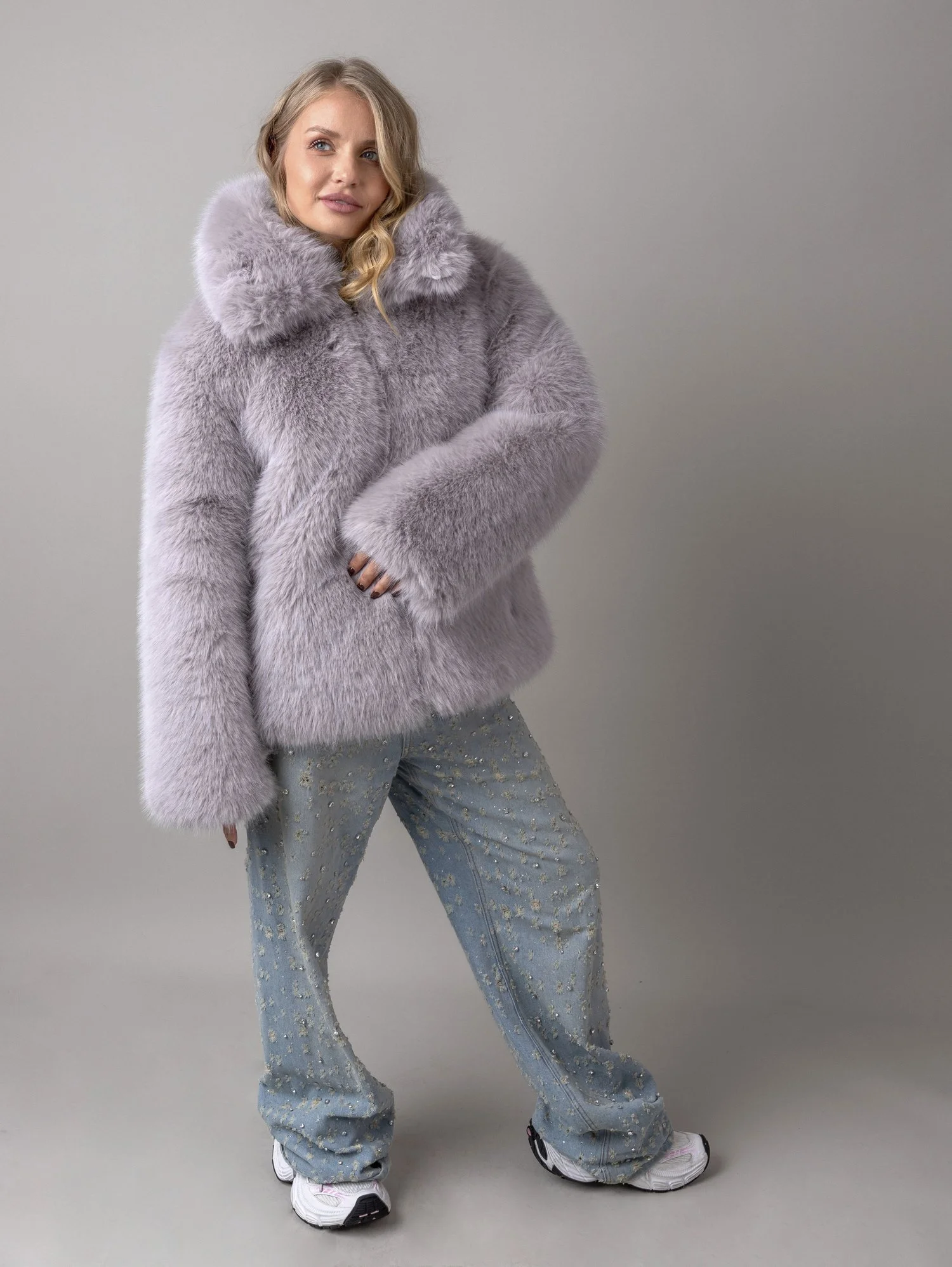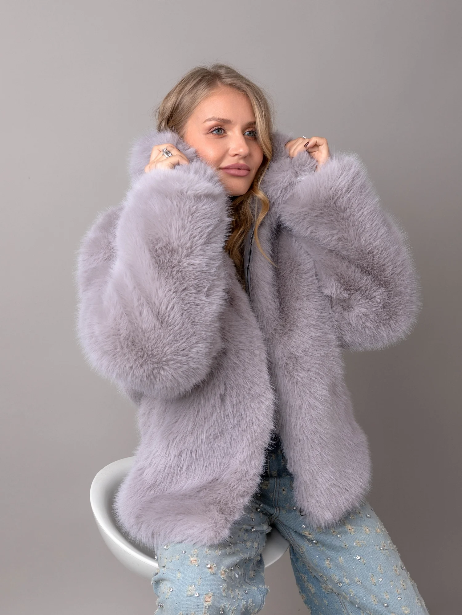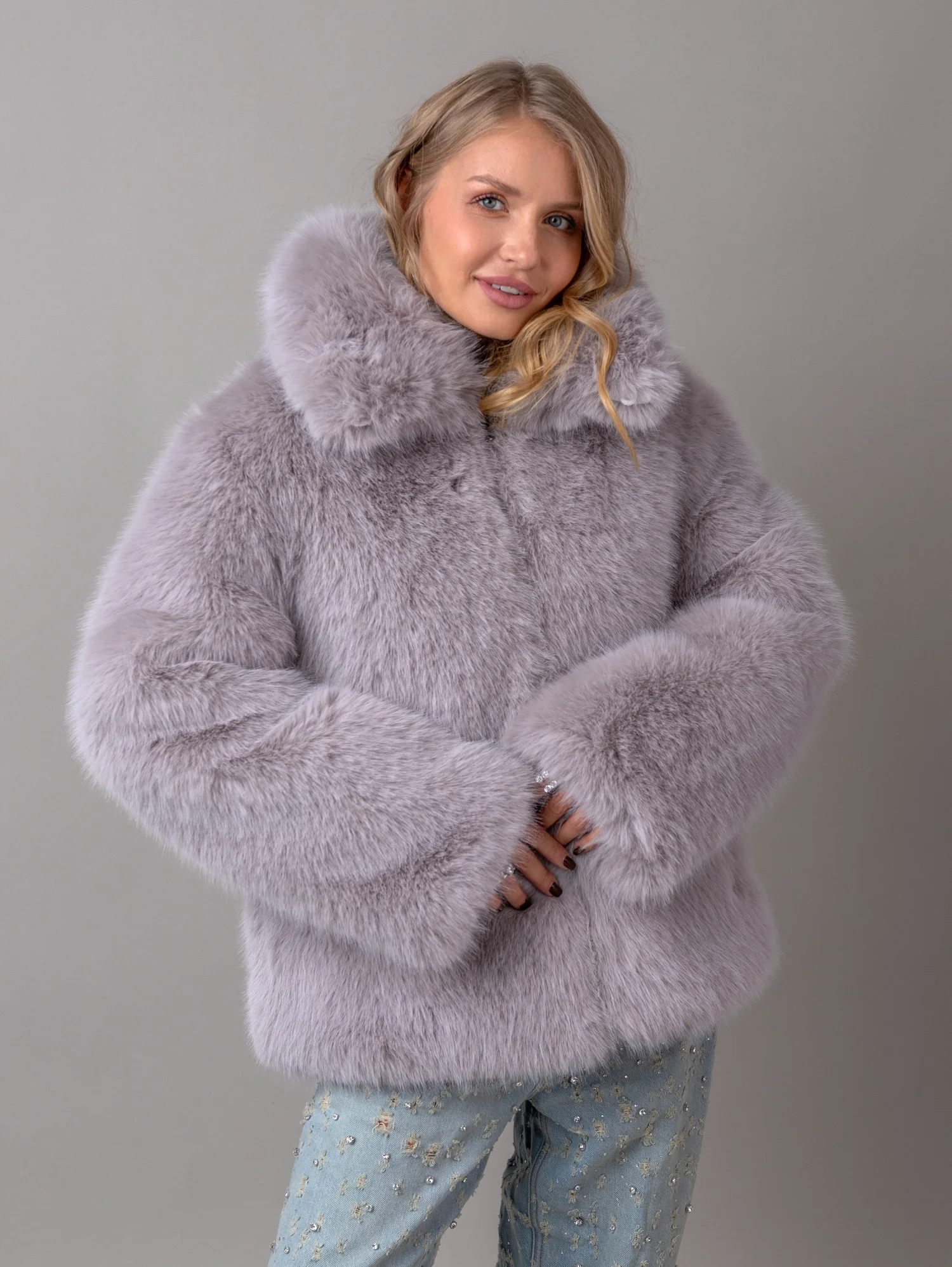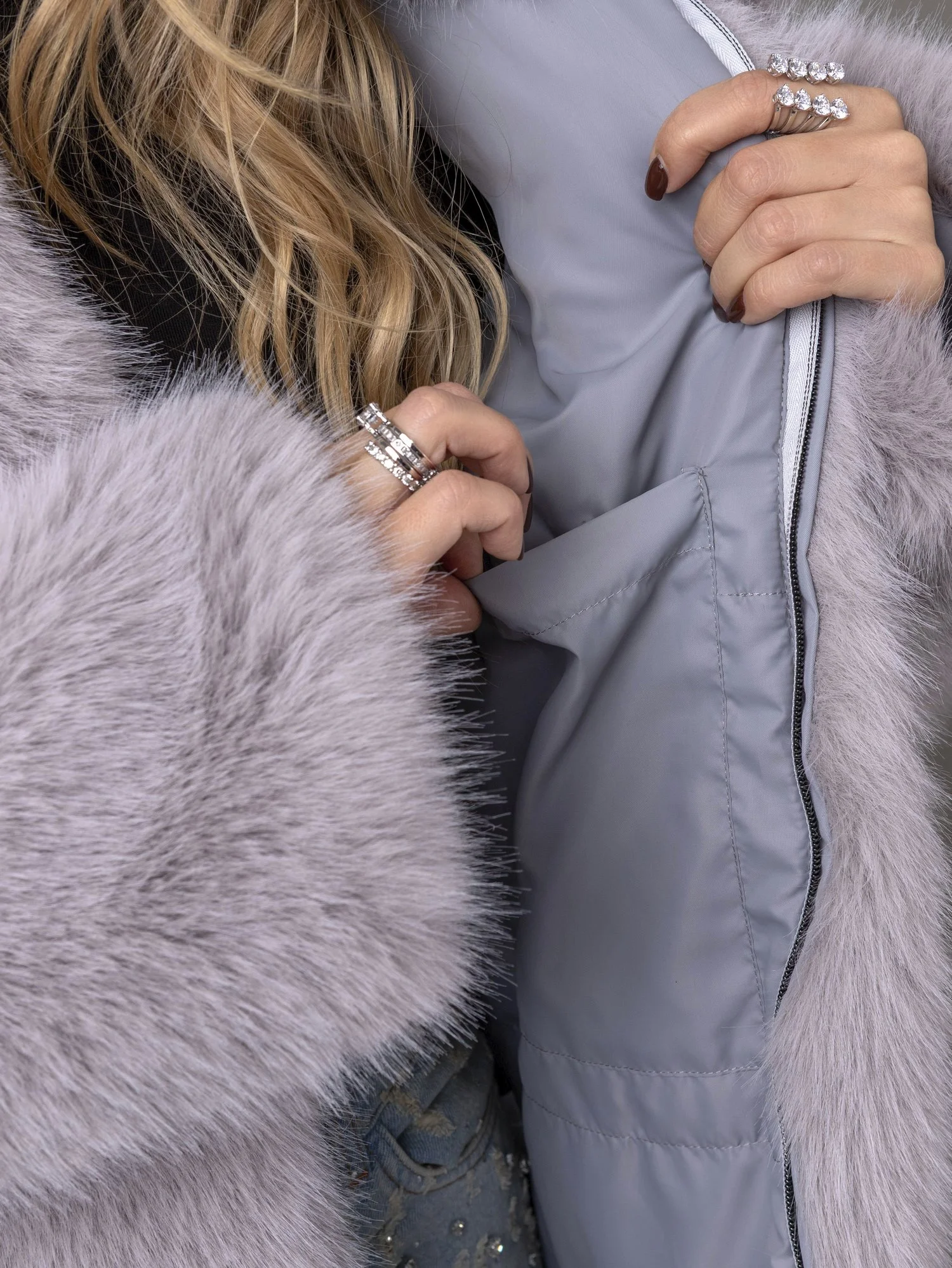 Шуба серая до бедер сочетает в себе утонченный дизайн и продуманную функциональность. Центральная застежка-молния обеспечивает удобство использования, а воротник стояче-отложного типа предлагает вариативность в создании образа: его можно носить как классической стойкой, так и мягко отложить. Дополнительная застежка на пуговицу у горловины надежно защищает от ветра и холода. Практичность модели подчеркивают удобные прорезные боковые карманы с теплой подкладкой, где руки будут надежно защищены от мороза. Элегантный силуэт, качественные материалы и внимание к деталям делают эту шубу идеальным выбором для городских прогулок и деловых встреч в холодное время года.