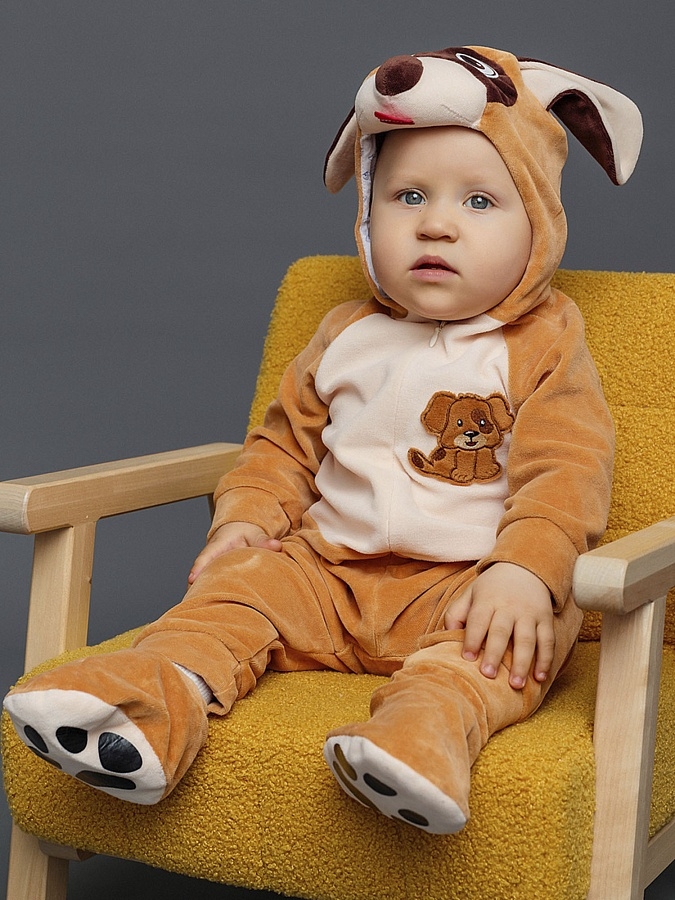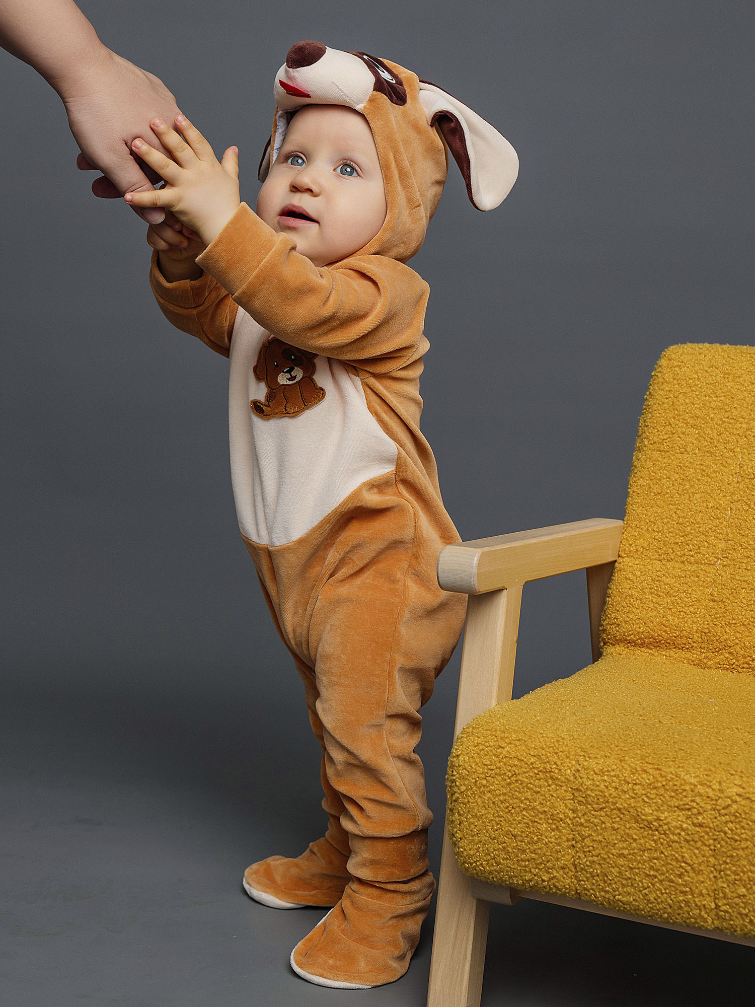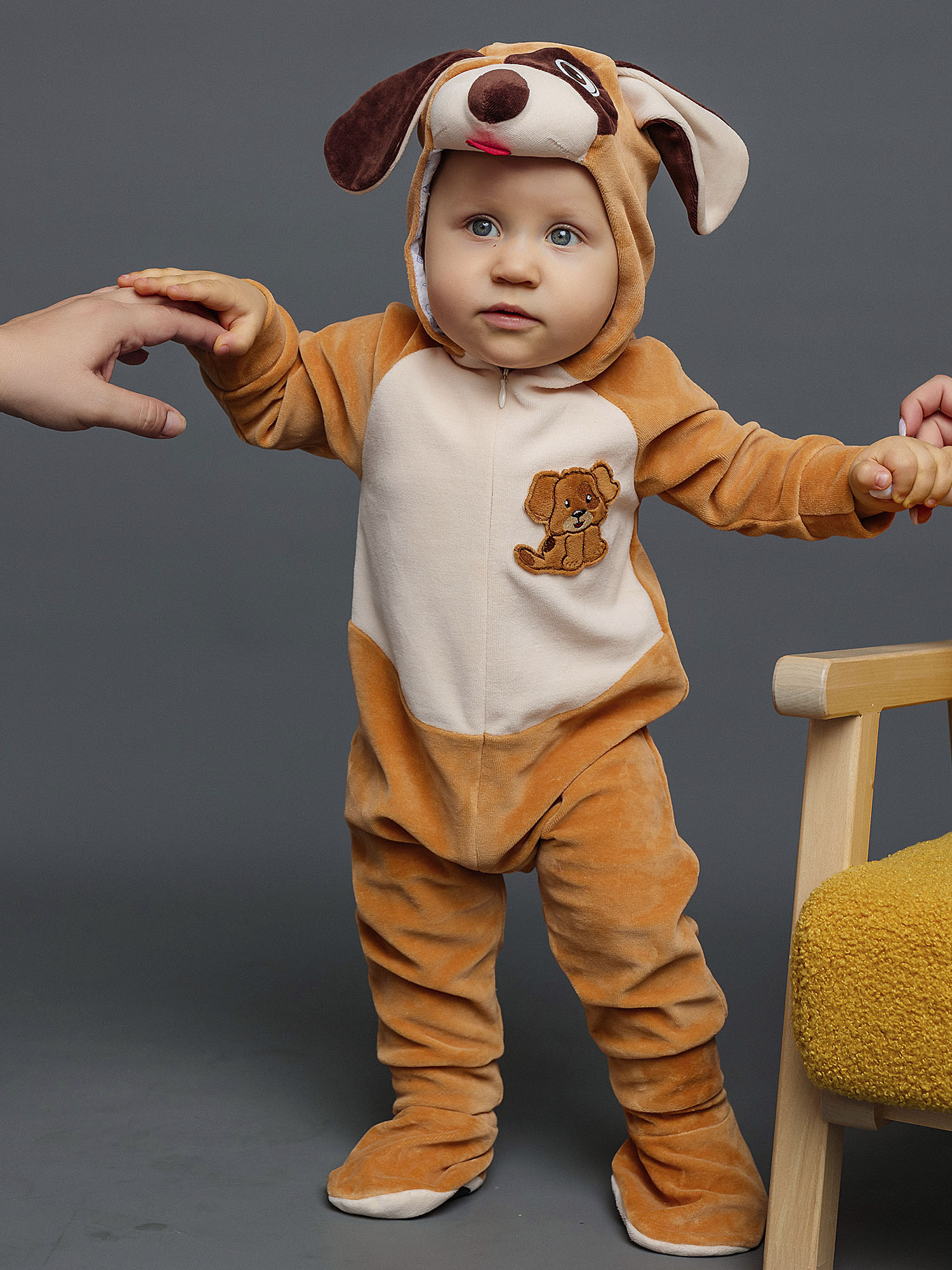 Костюм Песика из серии Ладушки-Игрушки бренда Пуговка. В этой серии представлены замечательные костюмы для самых маленьких. Костюм-комбинезон выполнен из натурального хлопка, подойдет деткам до 1 года (размер 74).