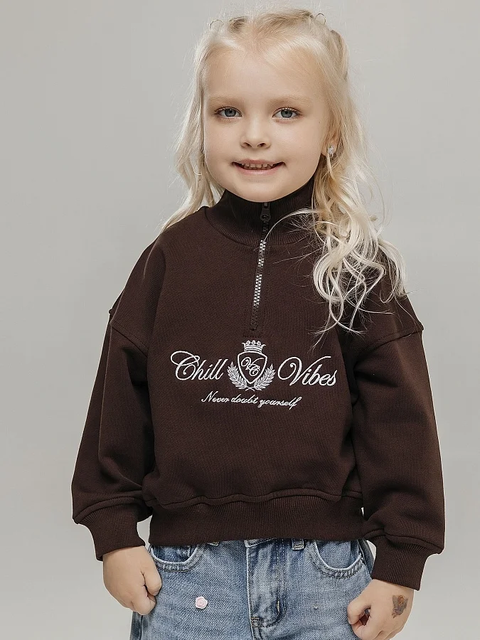 Анорак (джемпер) для девочек в цвете шоколад — стильная и удобная модель для повседневной носки. Практичный крой обеспечивает комфорт и свободу движений, а универсальный дизайн легко сочетается с различной одеждой. Отличный вариант для прогулок и активного дня.