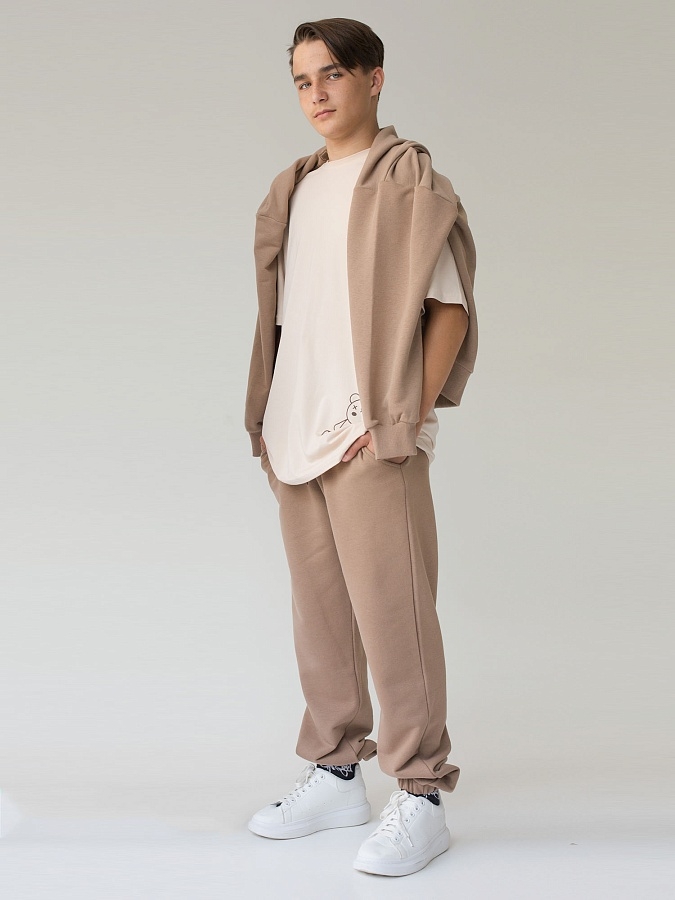 Брюки в кофейной расцветке из футера с карманами для детей и подростков. Спортивные брюки в однотонной расцветке подойдут для гардероба как мальчика, так и девочки. Универсальные и практичные брюки на каждый день.