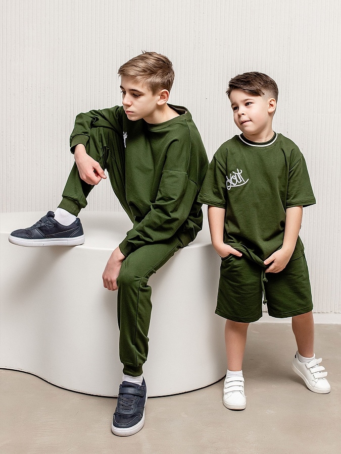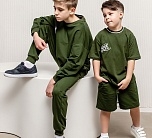 Футболка с коротким рукавом для мальчика в расцветке хаки. Стильная футболка со спущенной линией рукава и эластичной горловиной. Однотонная детская футболка из качественной хлопковой ткани.