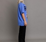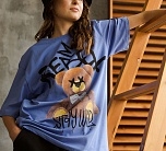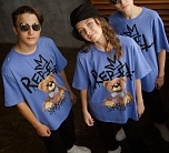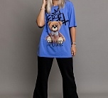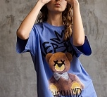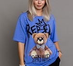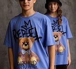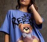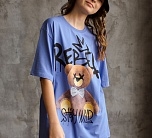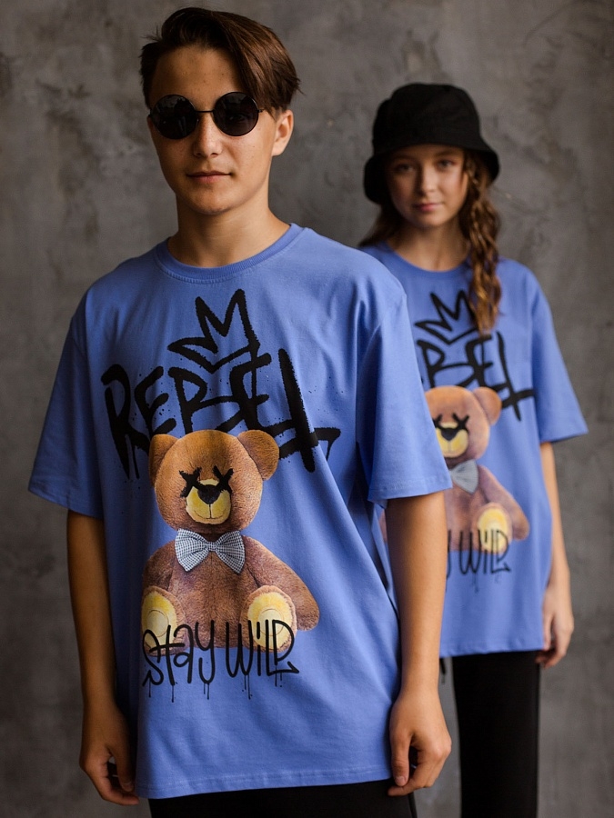 Футболка с коротким рукавом фиолетовая для детей и подростков. Крой оверсайз, спущенный рукав, "дерзкий" принт с надписями и плюшевым мишкой. Детская футболка выполнена из 100% хлопка, ткань супрем пенье.