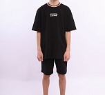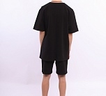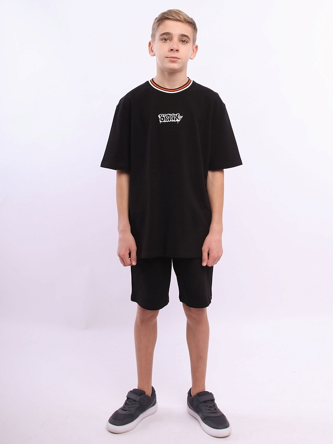 Шорты удлиненные для мальчика черные из пике. Шорты для детей и подростков с карманами, пояс на резинке со шнурком.