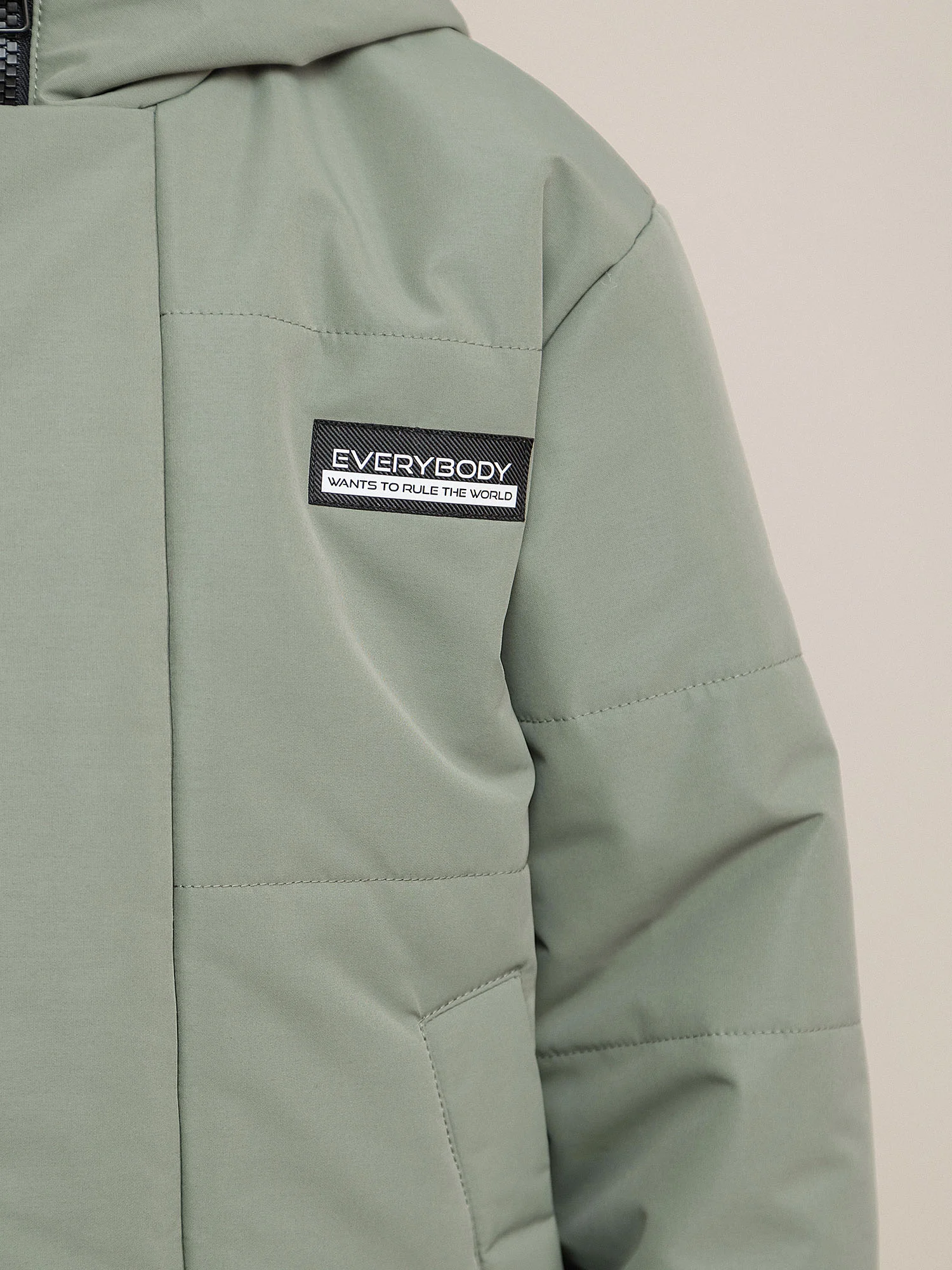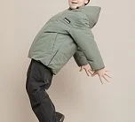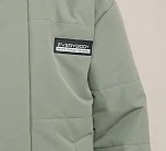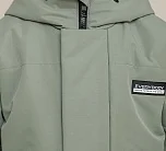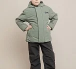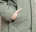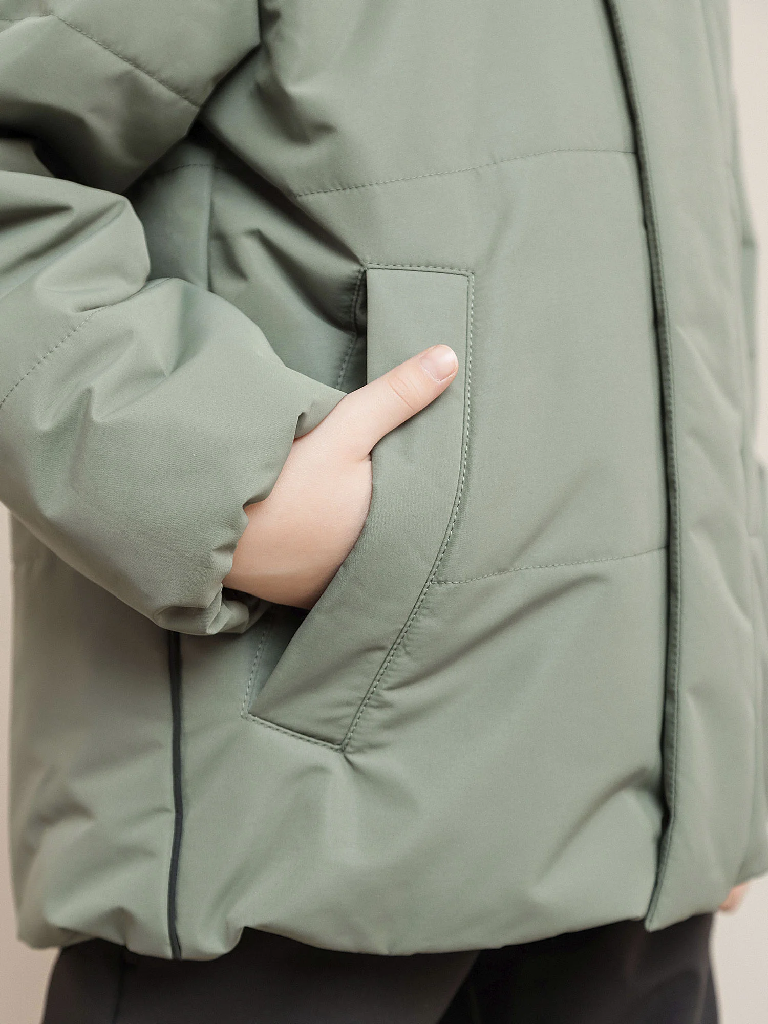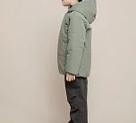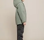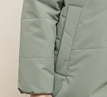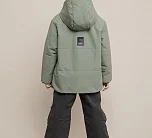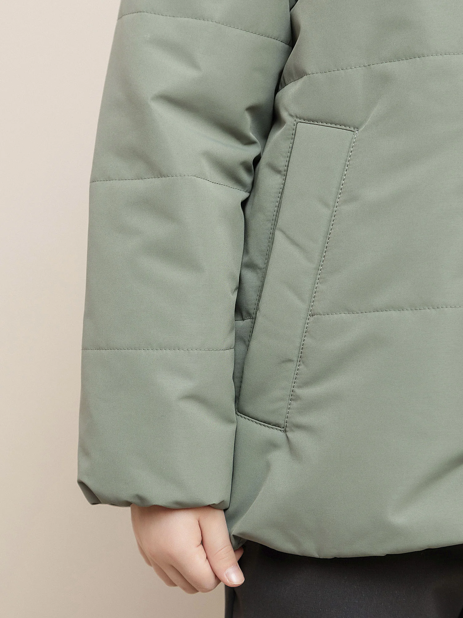 Куртка умеренного оверсайз-силуэта со спущенным плечом, втачными рукавами с манжетами на резинке и воротником из эластичного трикотажа для защиты от поддувания. Втачной капюшон регулируется по высоте с помощью резинки и фиксаторов. Центральная застёжка на молнию с внутренней и внешней ветрозащитной планкой на магнитах. Прорезные карманы на магнитах, вертикальная стёжка по спинке, полочкам и рукавам добавляет стиля.