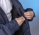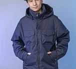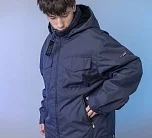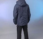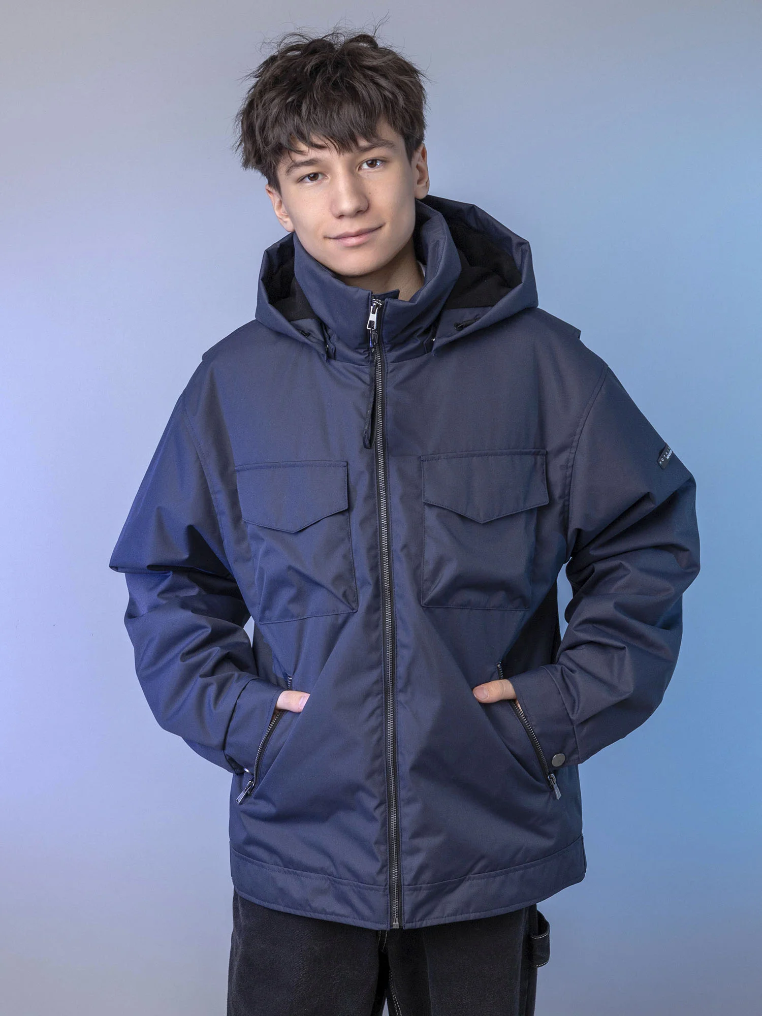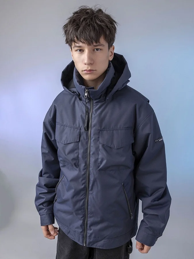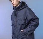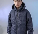 Центральная металлическая молния с внутренней ветрозащитной планкой. Воротник-стойка сохраняет тепло. Нагрудные накладные карманы с клапаном на магните и удобные боковые карманы на молнии. Спинка с отлетными кокетками по пройме. Объёмные рукава с манжетой и регулировкой ширины на кнопках. Боковые паты на спинке для регулировки ширины. Съёмный капюшон с регулировкой по внутреннему лицевому краю.