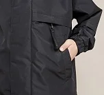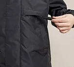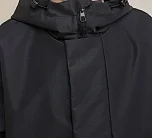 Центральная застёжка на молнию с внутренней и внешней втачной ветрозащитной планкой на магниты. Прорезные карманы на магнитах. На левой полочке дополнительный подрез с карманом на молнии для важных мелочей. Втачные рукава с манжетами на резинке и декоративными напусками на уровне локтя. На спинке декоративный напуск-кокетка. Низ куртки регулируется шляпной резинкой с фиксаторами.