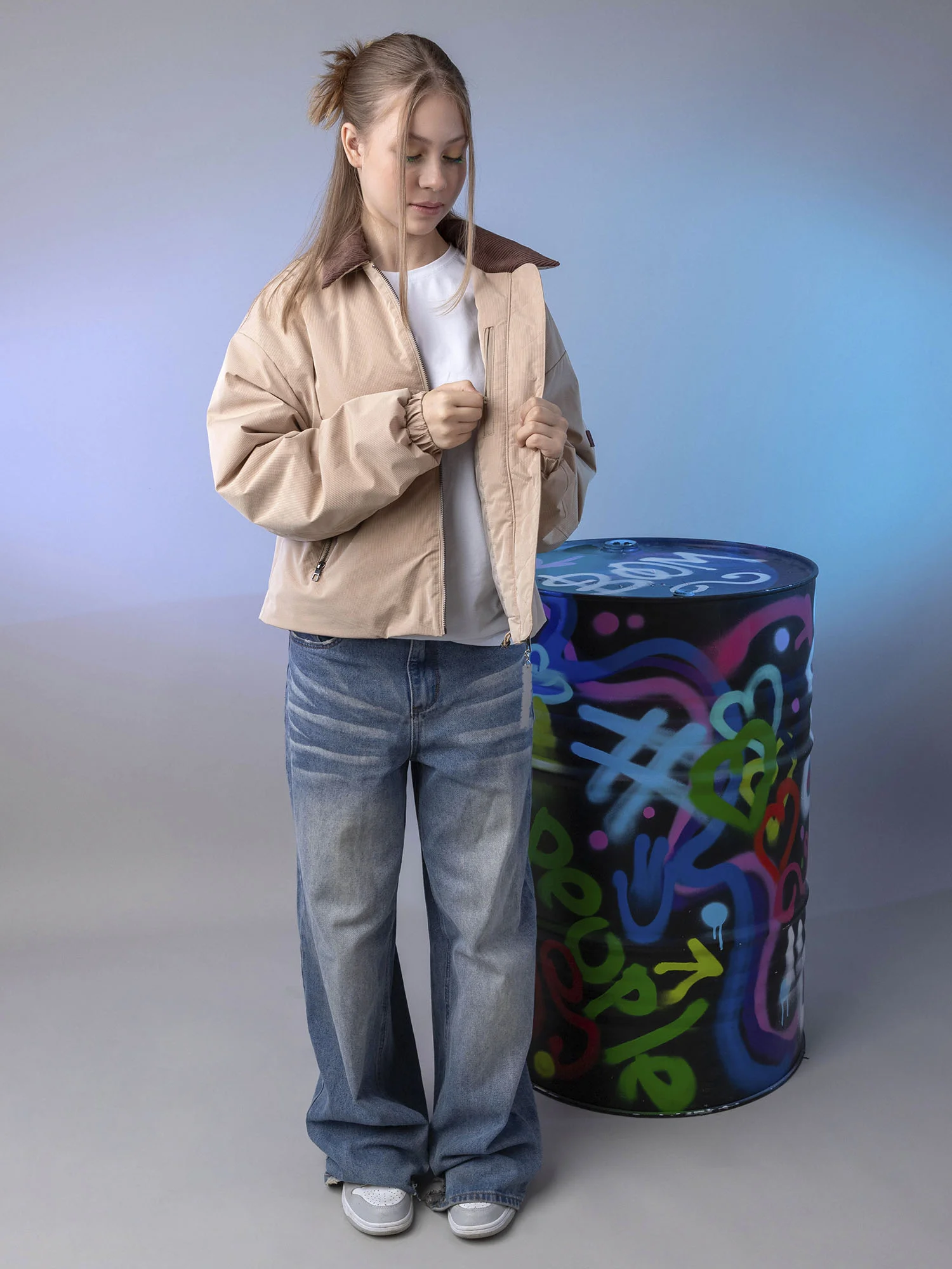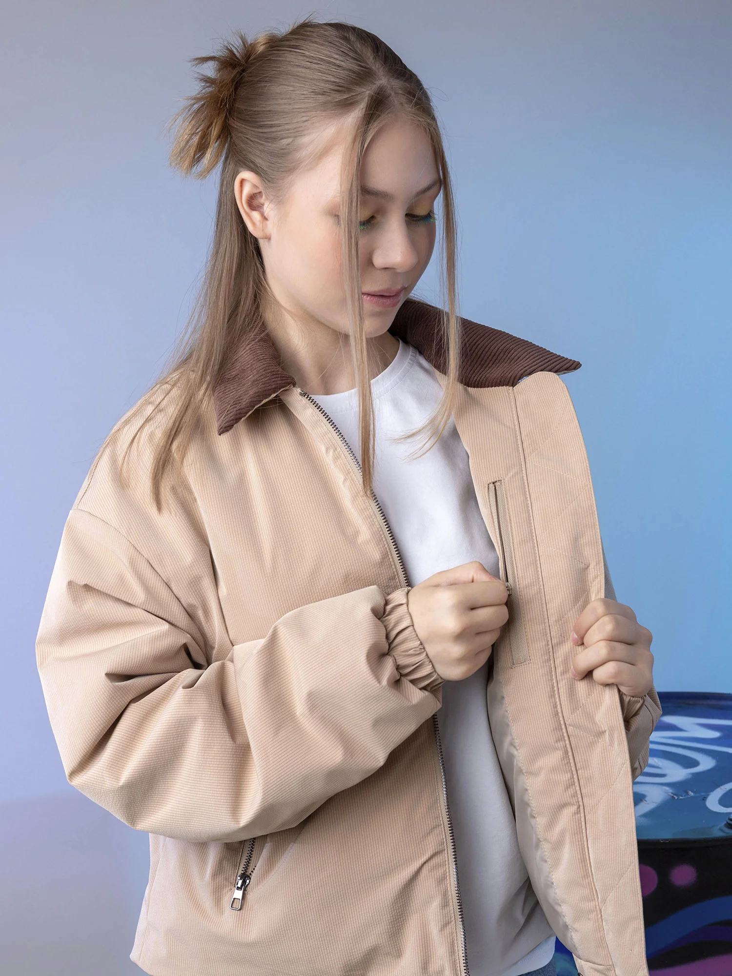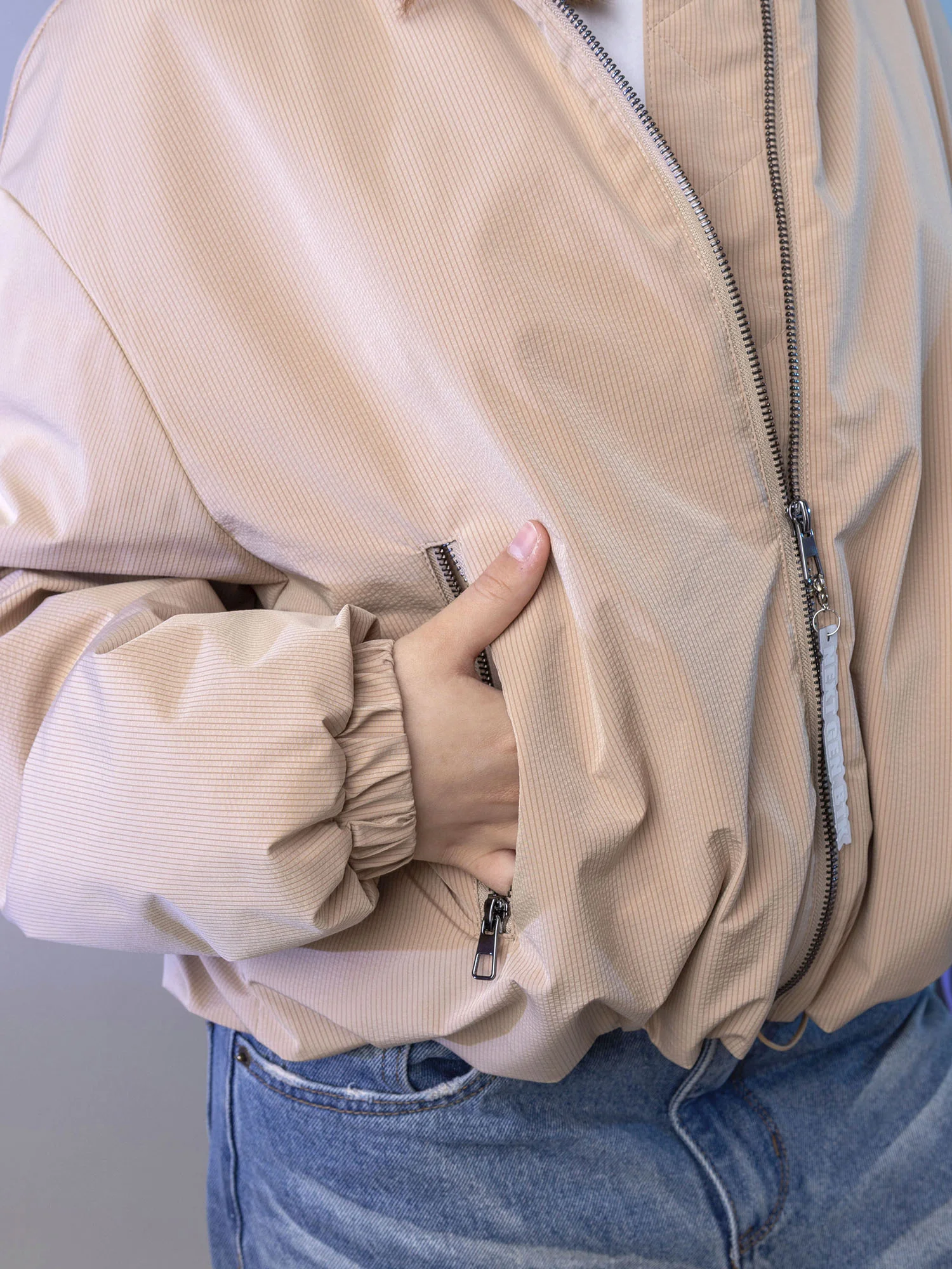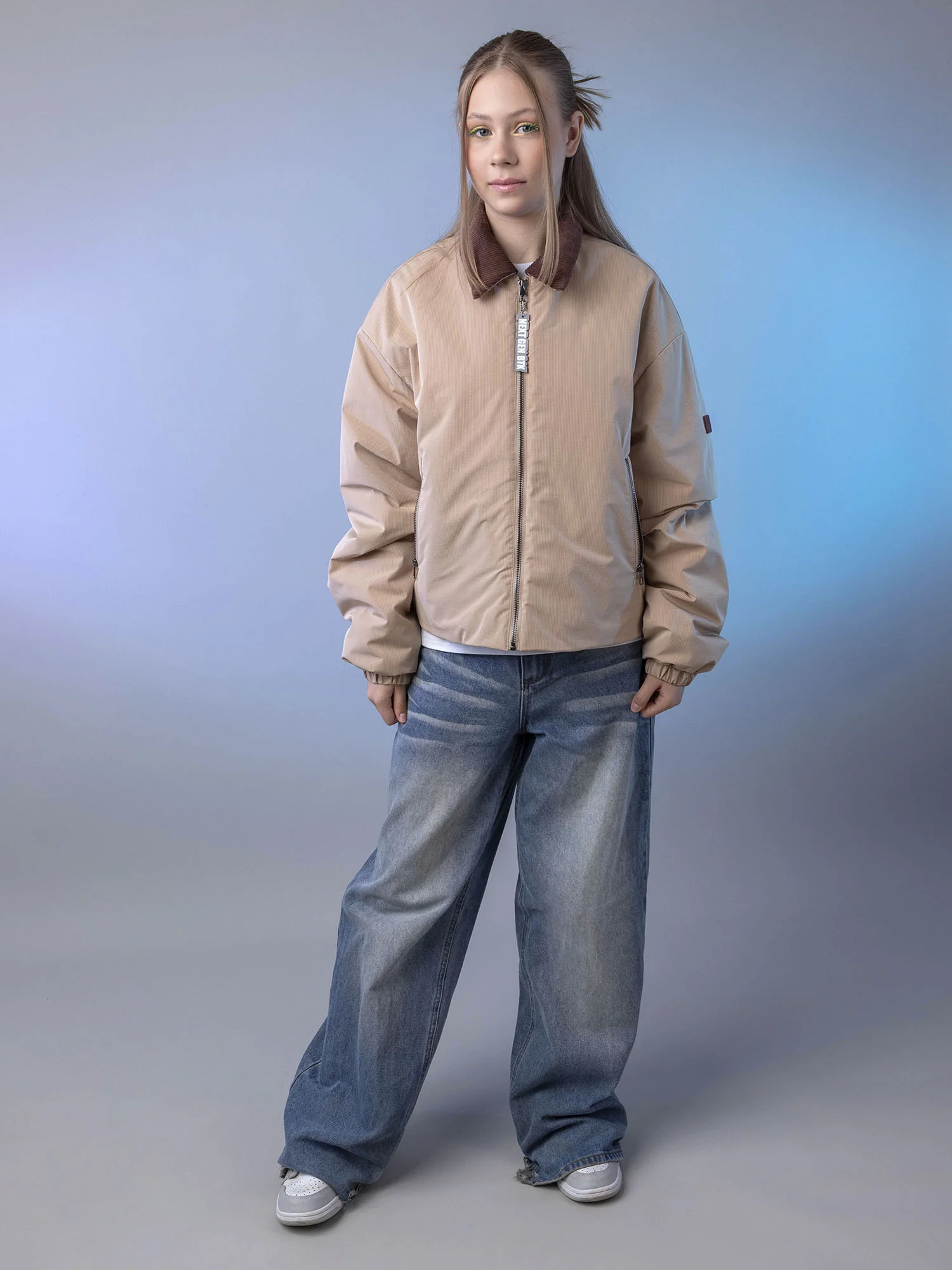 Куртка-бомбер Мирэль — эффектная модель для девочек в актуальном oversize-силуэте. Изделие выполнено из плотной мембранной ткани с необычным визуальным эффектом ворсовой поверхности, которая придаёт куртке выразительный и современный вид.