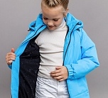 Куртка-парка детская Мико в лазурном оттенке демисезонная из мембраны. Яркая стильная куртка на весну и осень с утеплителем и хлопковым гипоаллергенным подкладом. Парка для детей и подростков из мембраны прекрасно защитит от ветра и влаги. Боковые карманы и внутренний карман.