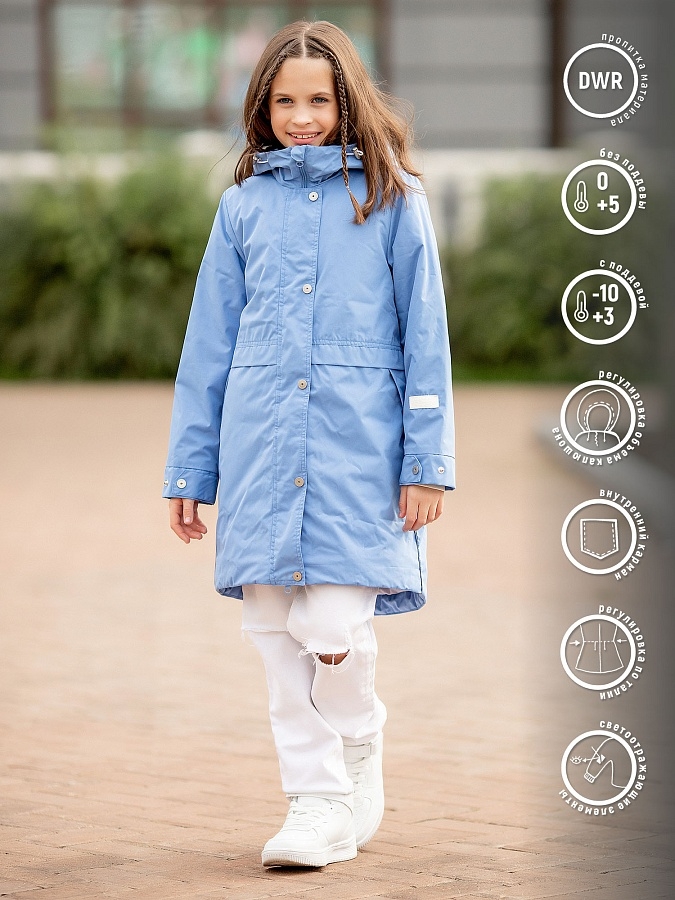 Классическая парка для девочки Джанет эргономичного кроя - это отличное решение для модных школьниц. Спокойные тона, планка с термотрансфером на спинке, на рукавах регулируемые в объеме манжеты. Мембранная ткань с водоотталкивающим покрытием позволит чувствовать себя комфортно в любую погоду.
