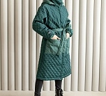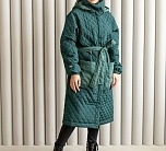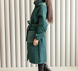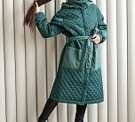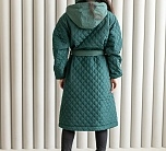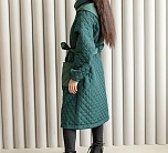 Парка-плащ для девочки Марта утепленная в зеленом цвете из стеганой курточной ткани. Модный базовый плащ с высоким воротником и капюшоном. Качественная стильная вещь, которая подойдет на весну и осень и особенно понравится подросткам. Будет отлично смотреться с джинсами, брюками и юбками.