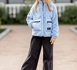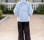 Куртка меховая для девочки Веста голубая без утеплителя. Куртка выполнена из плюшевого искусственного меха с мягким ворсом. Прямой крой, капюшон, застёжка на молнию, два кармана.