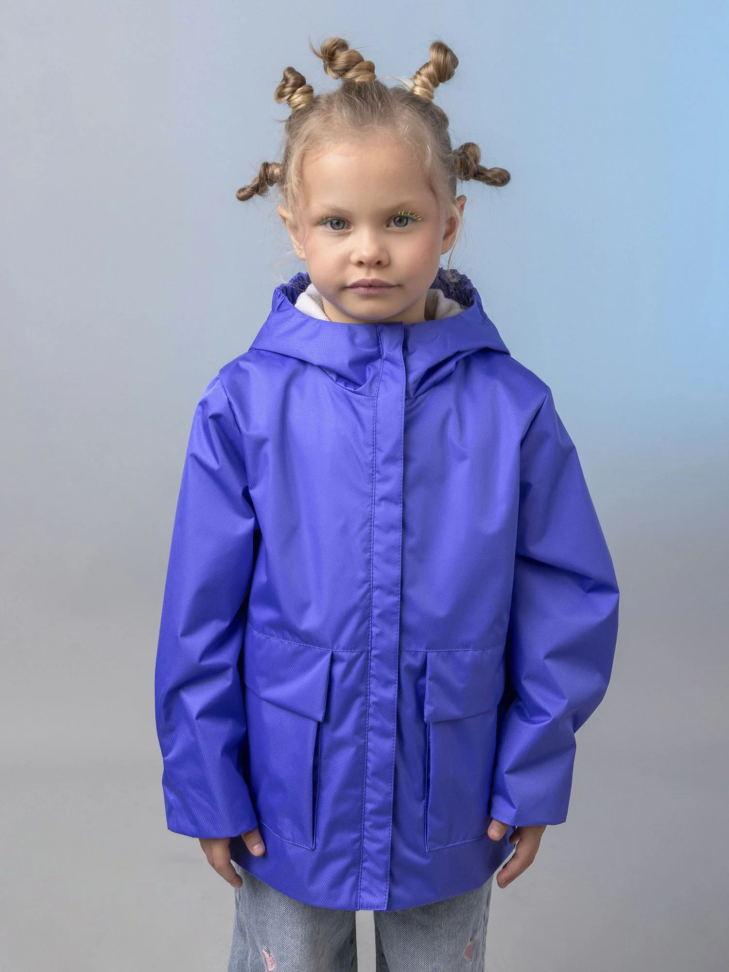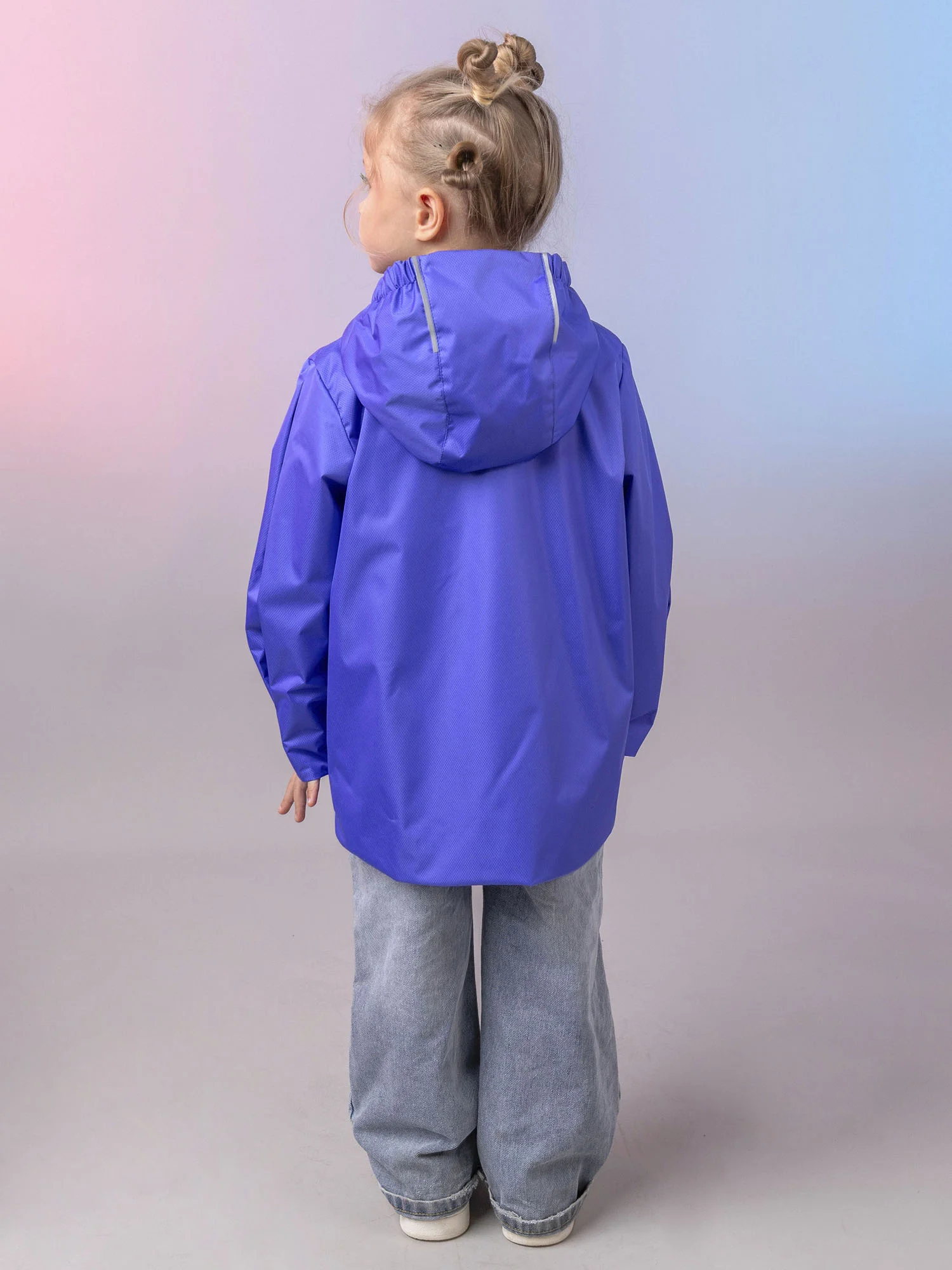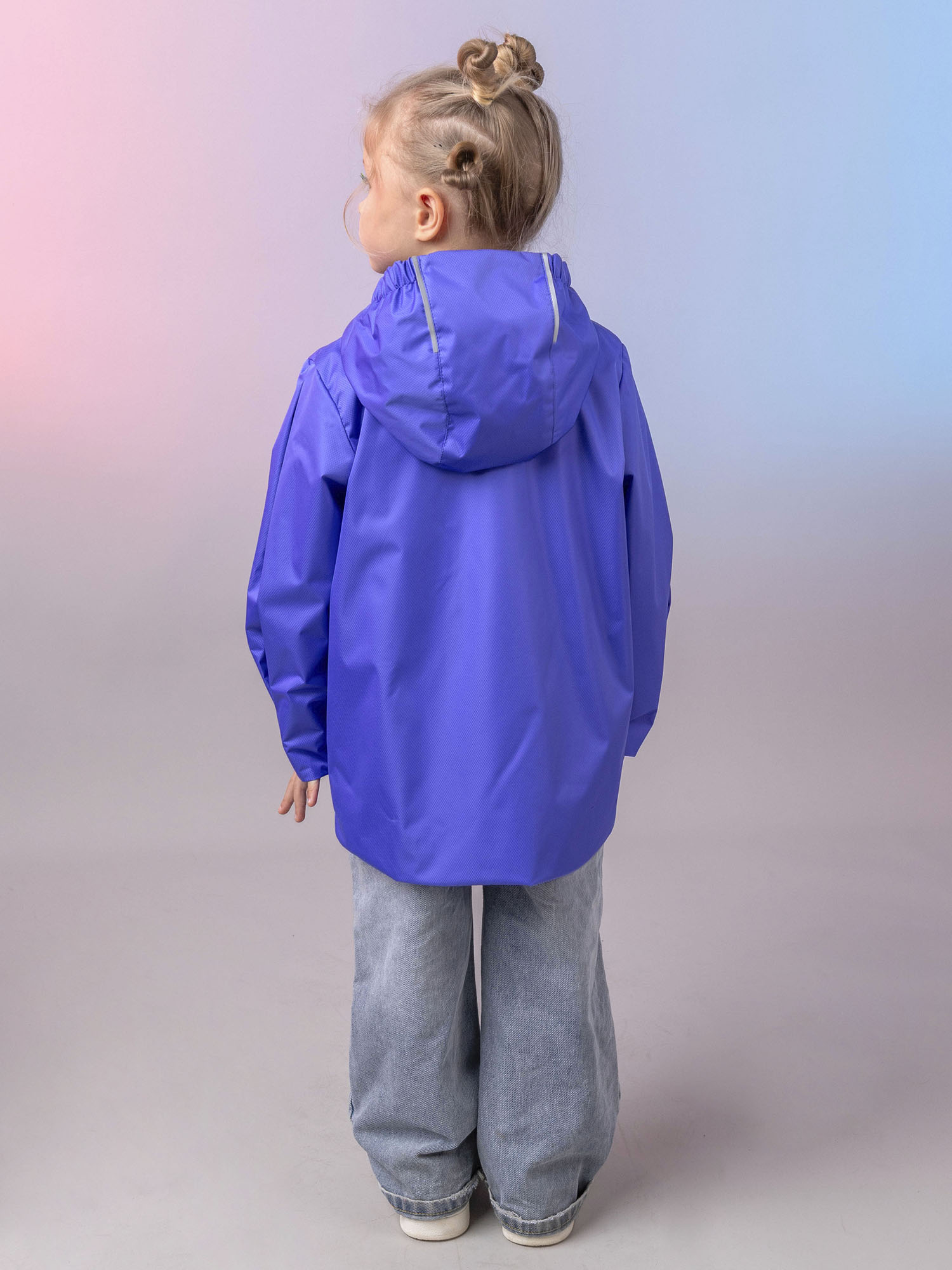 Модель оснащена центральной застёжкой-молнией с защитой подбородка, вместительным карманом под клапаном и капюшоном с утяжкой для регулировки объёма. Светоотражающие элементы повышают безопасность ребёнка в тёмное время суток.