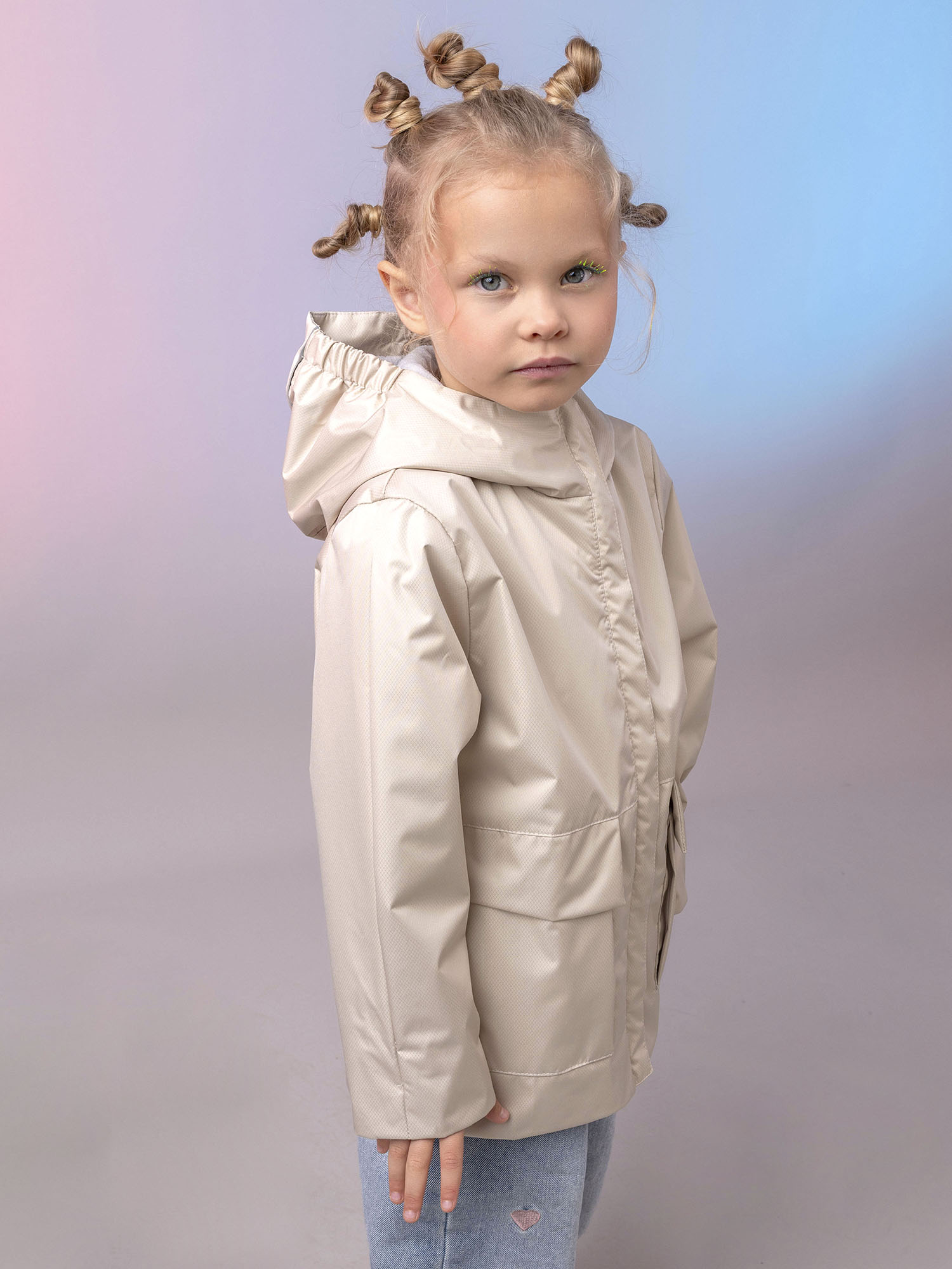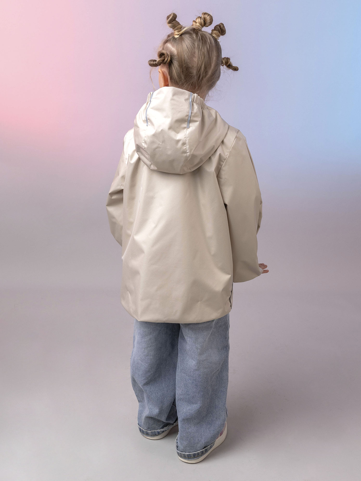 Модель оснащена центральной застёжкой-молнией с защитой подбородка, вместительным карманом под клапаном и капюшоном с утяжкой для регулировки объёма. Светоотражающие элементы повышают безопасность ребёнка в тёмное время суток.