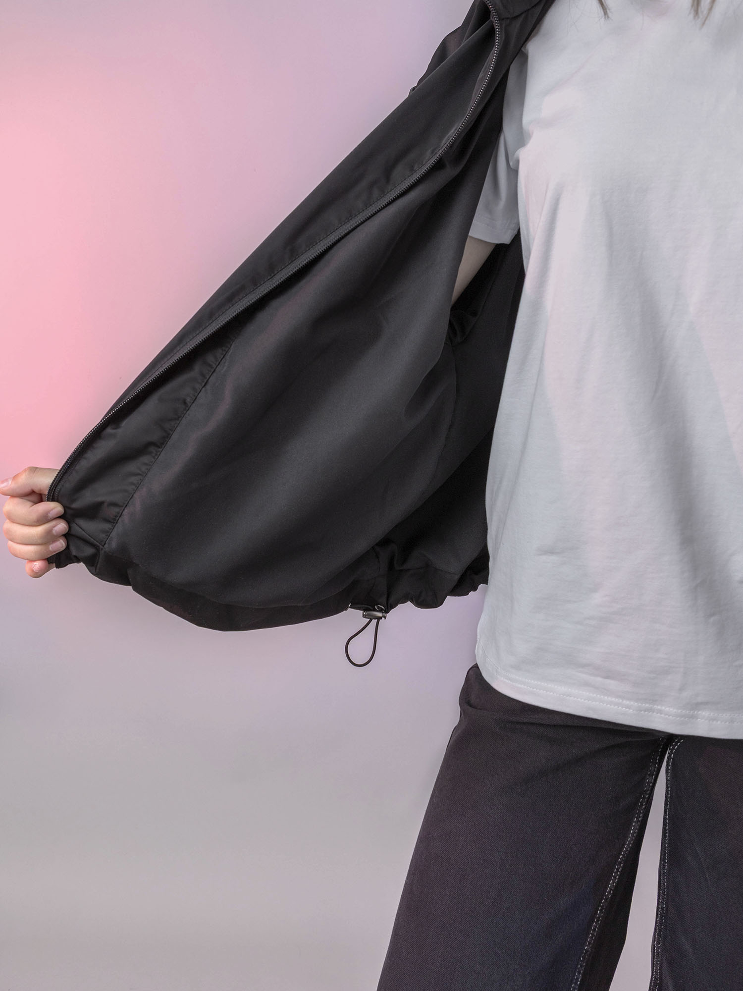 Подклад выполнен из лёгкого мягкого полиэстера. Ветровка проста в уходе, быстро сохнет и хорошо держит форму, что делает её удобным выбором для повседневной носки.